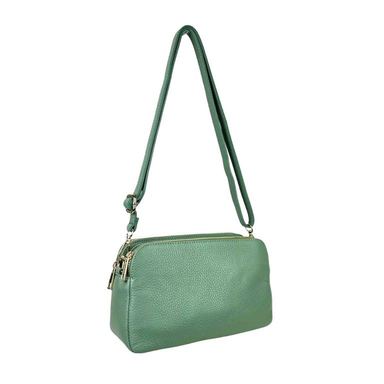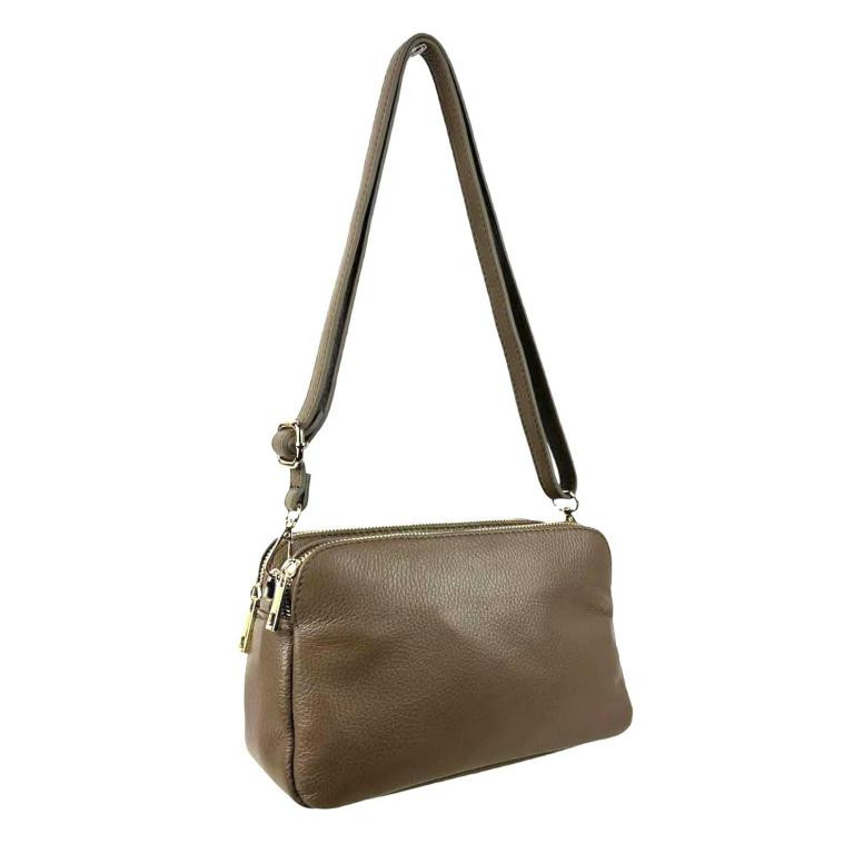 Bolso Bandolera de Mujer en Piel con 2 Cremalleras y Compartimento Central con Cierre de Botón. Fabricado en Italia.