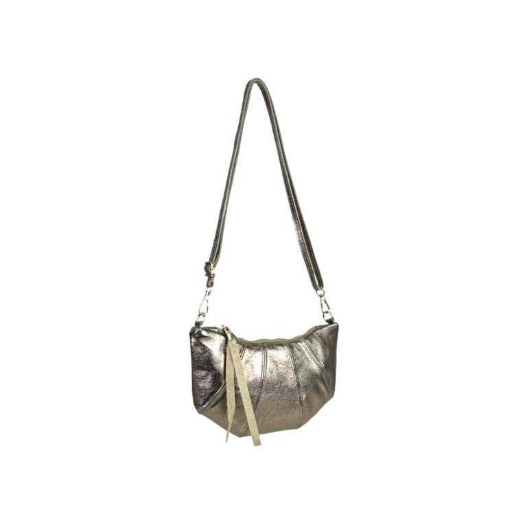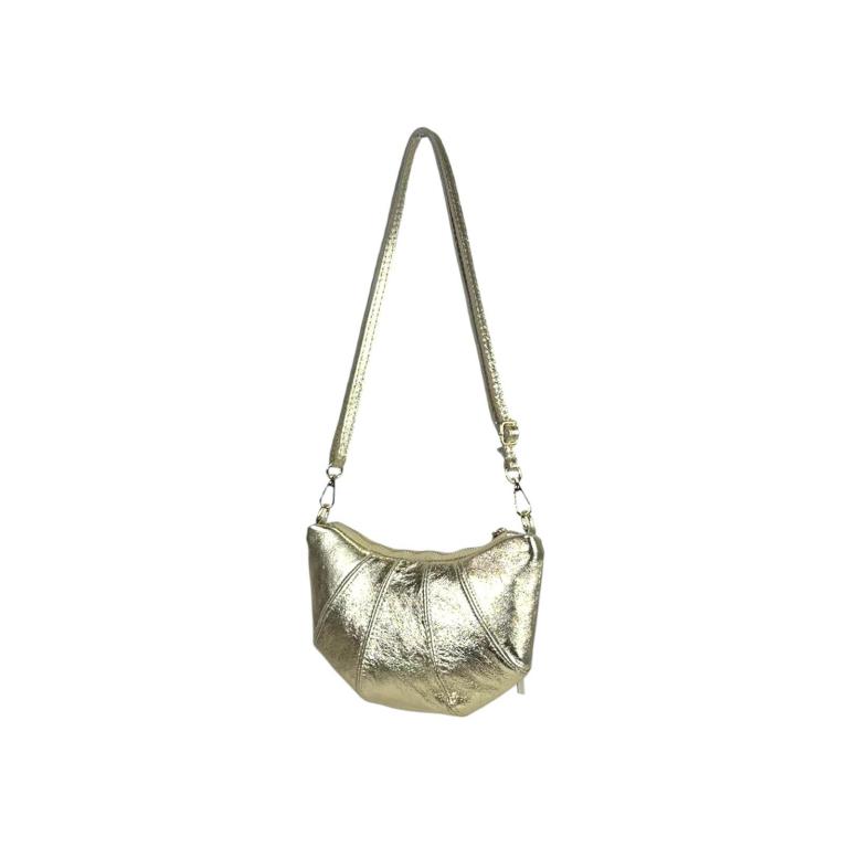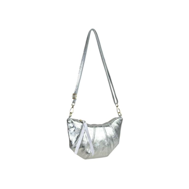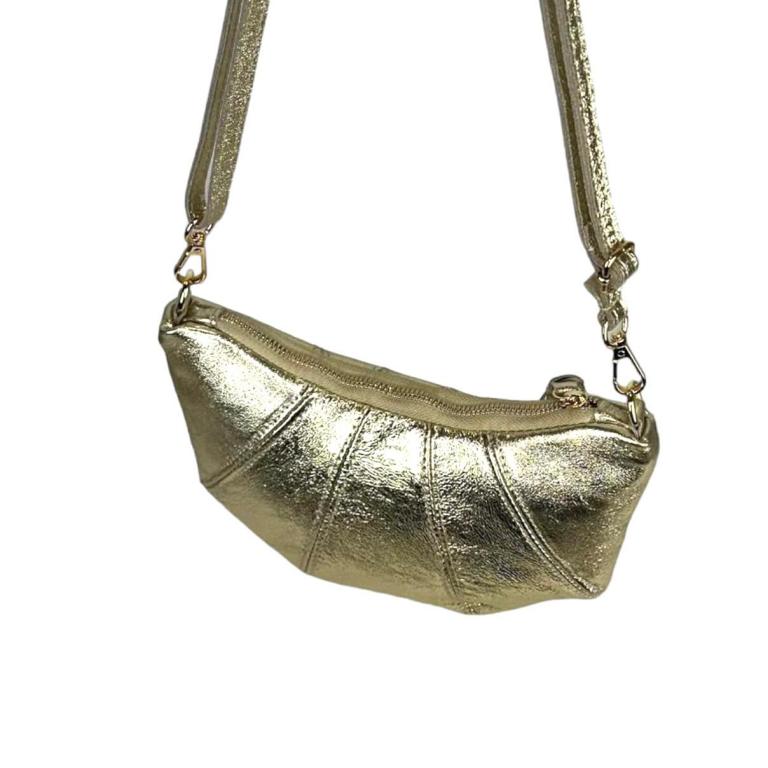 Bolso Bandolera de Mujer en Piel Italiana con Diseño Medialuna, Efecto Brillante y Tira Bandolera Ajustable y Extraíble.