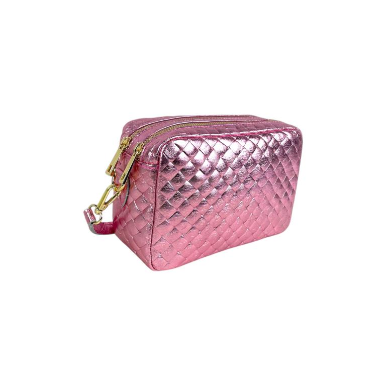 Bolso Bandolera de Mujer en Piel Italiana con Efecto Brillante y 2 Bolsillos con Cremallera