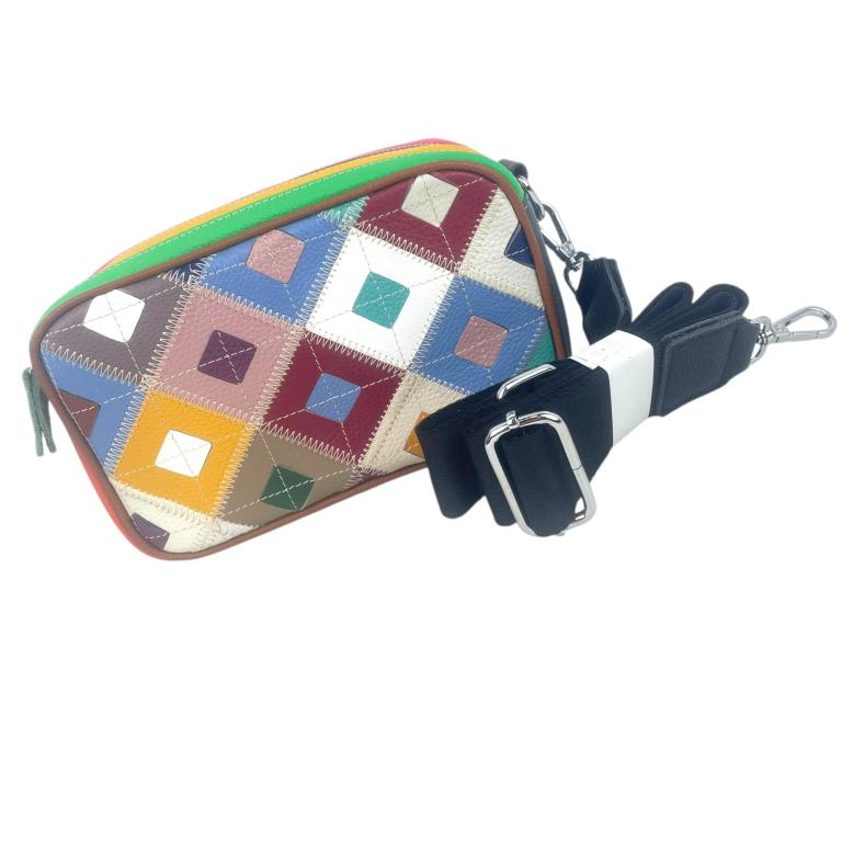Bolso Bandolera Multicolor Trenzado de Piel con Bolsillo Trasero y 2 Compartimentos, Todos Ellos con Cierre de Cremallera para Mujer.