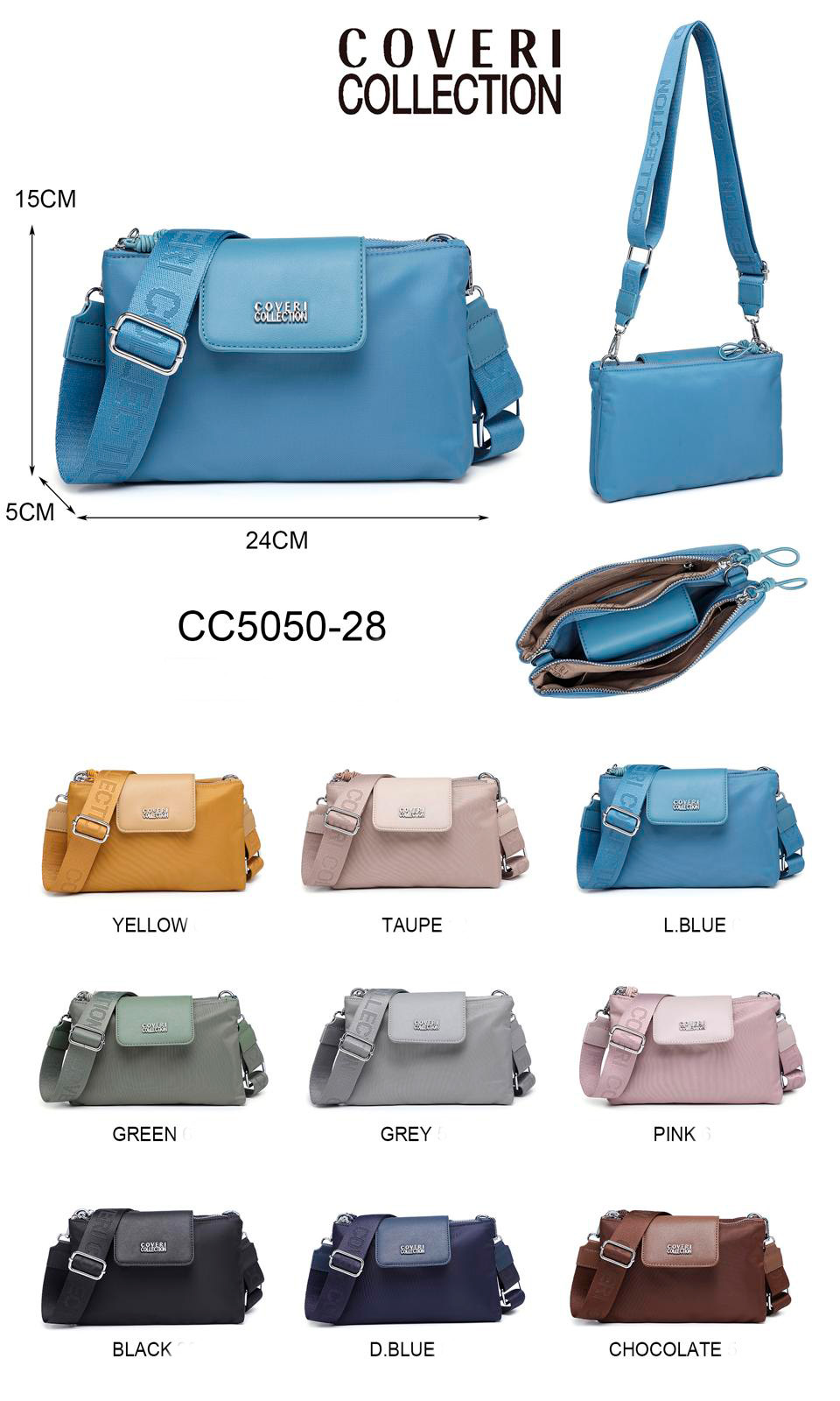 Bolso Bandolera en Nylon con Mini Solapa y 2 Bolsillos con Cierre de Cremallera para Mujer. Colección Coveri Collection.