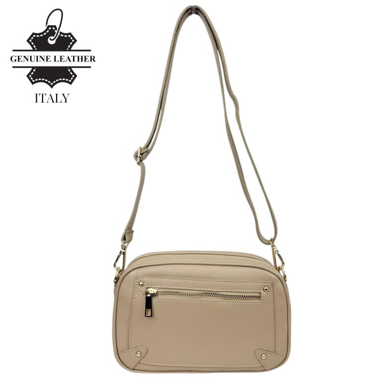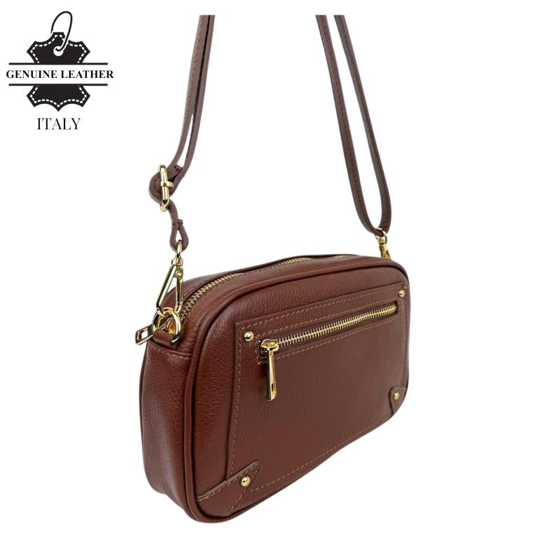 Bolso Bandolera en Piel con Bolsillo con Cierre de Cremallera y 4 Tachuelas Decorativas Frontales para Mujer. Fabricado en Italia.