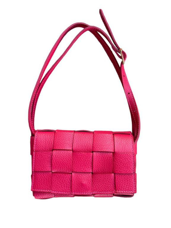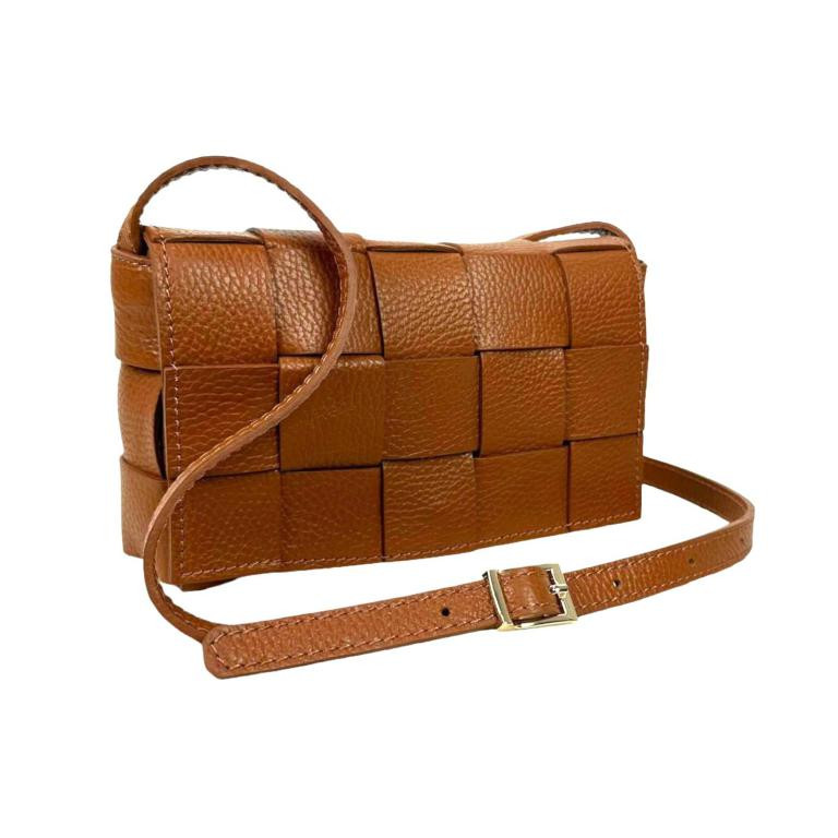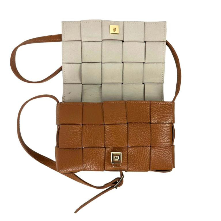 Bolso Bandolera de Piel con Diseño Cuadrados,  Solapa Magnética y Asa Larga Ajustable de Mujer. Fabricado en Italia.
