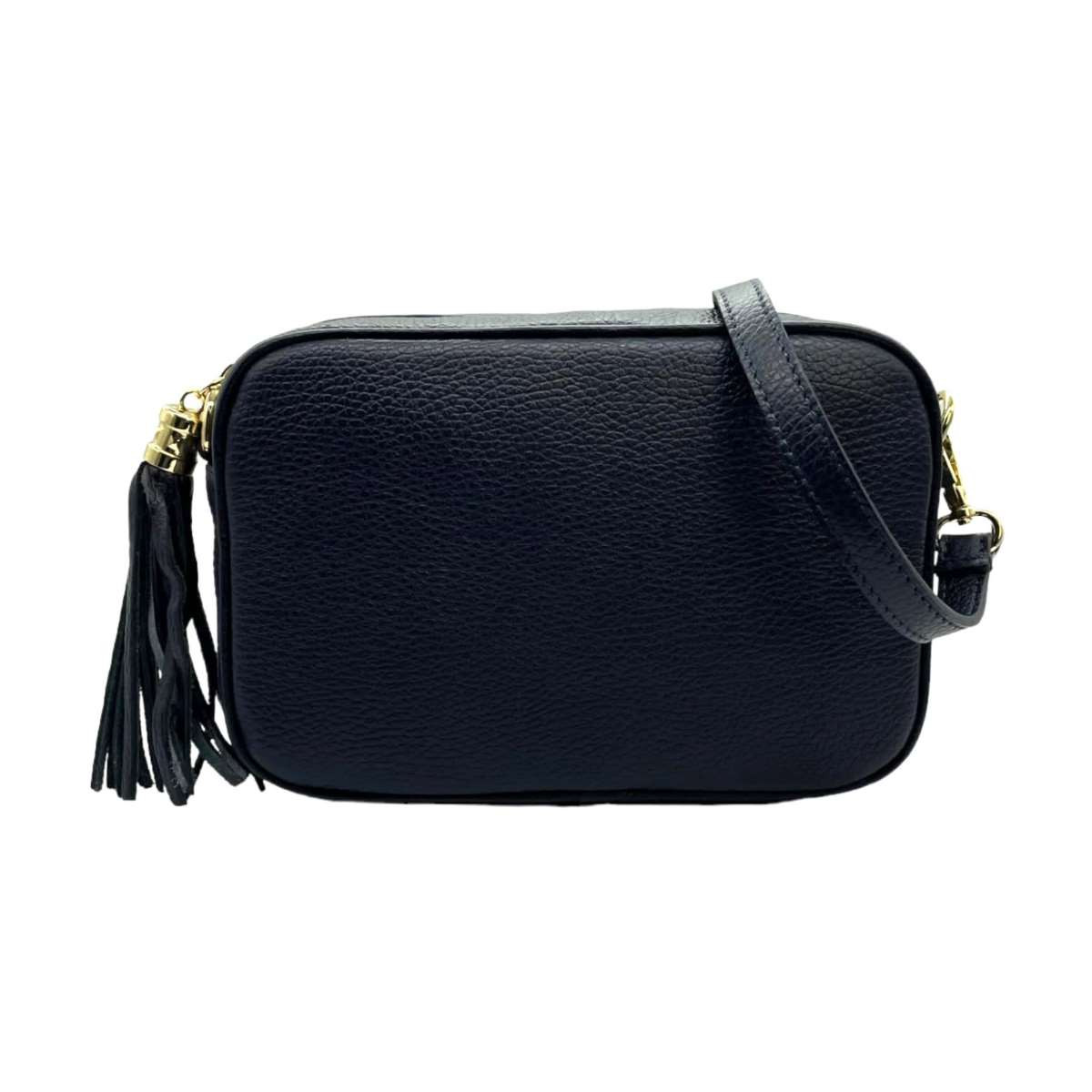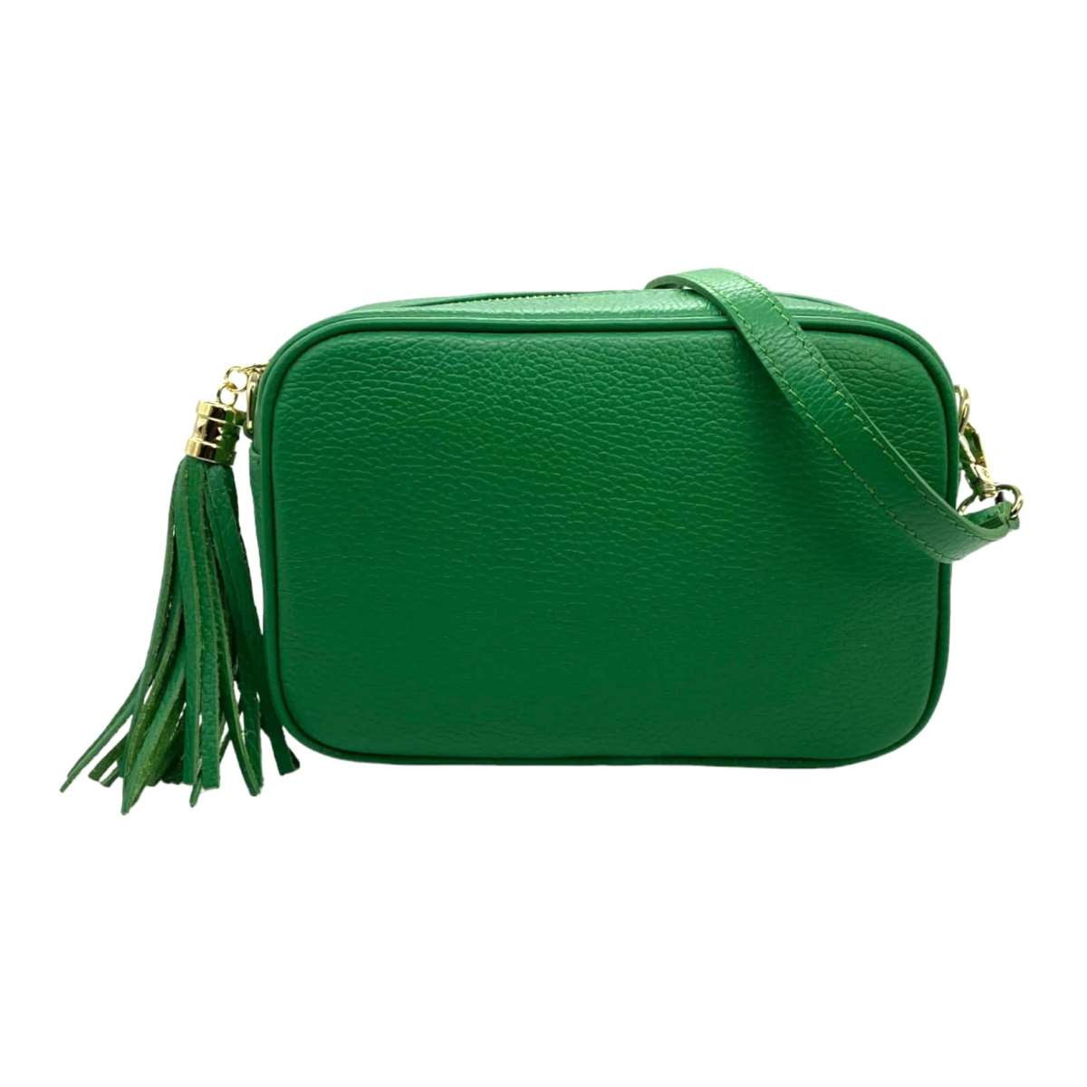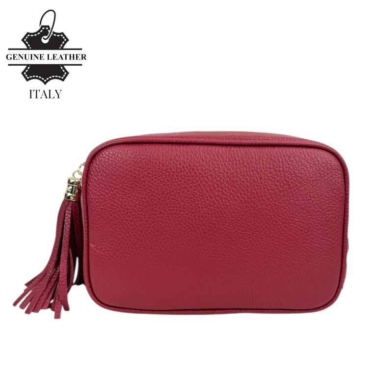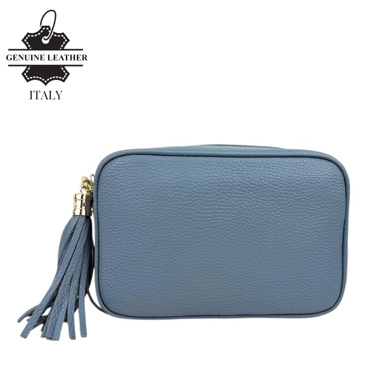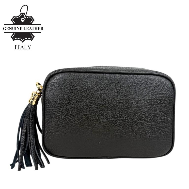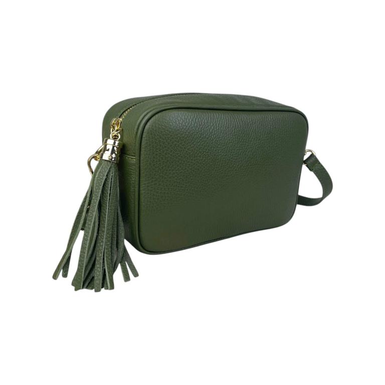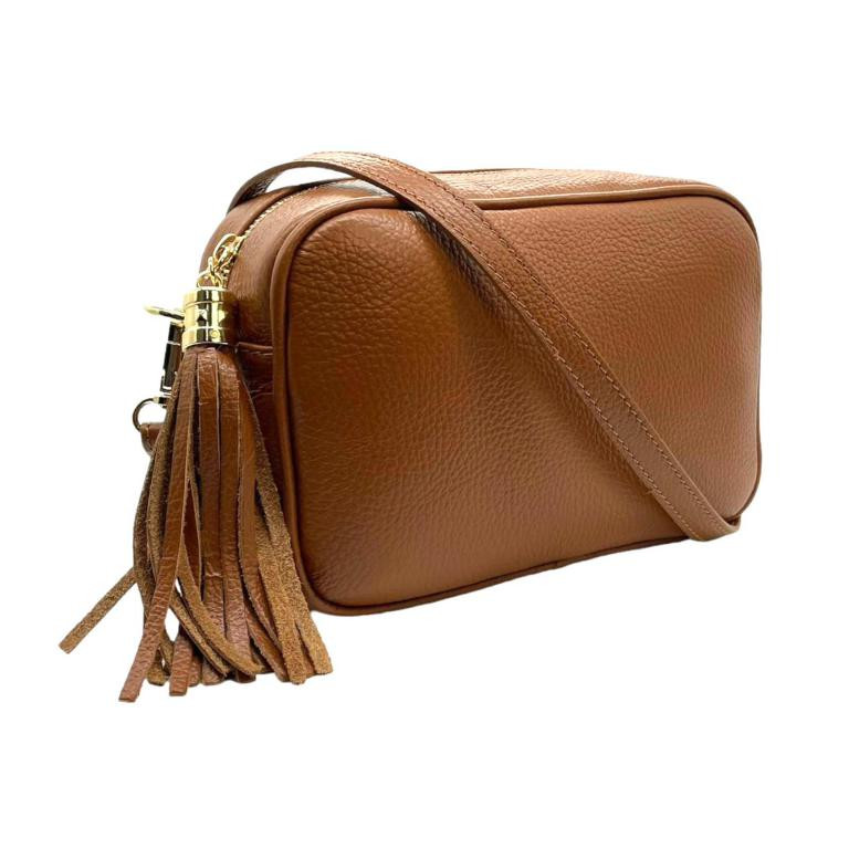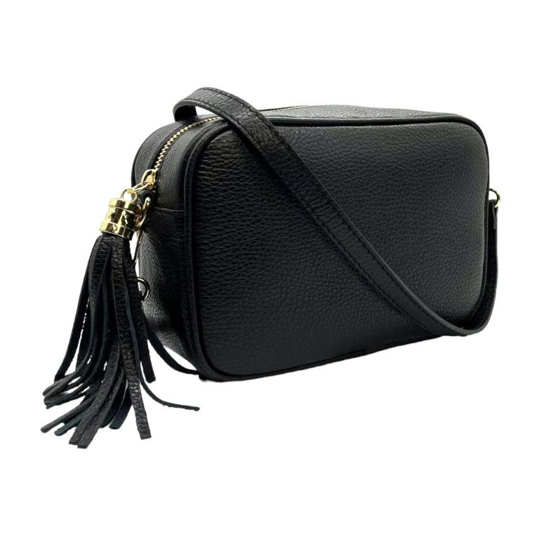 Bolso Bandolera Piel Grano Italiana para Mujer con Flecos Decorativos en la Cremallera.