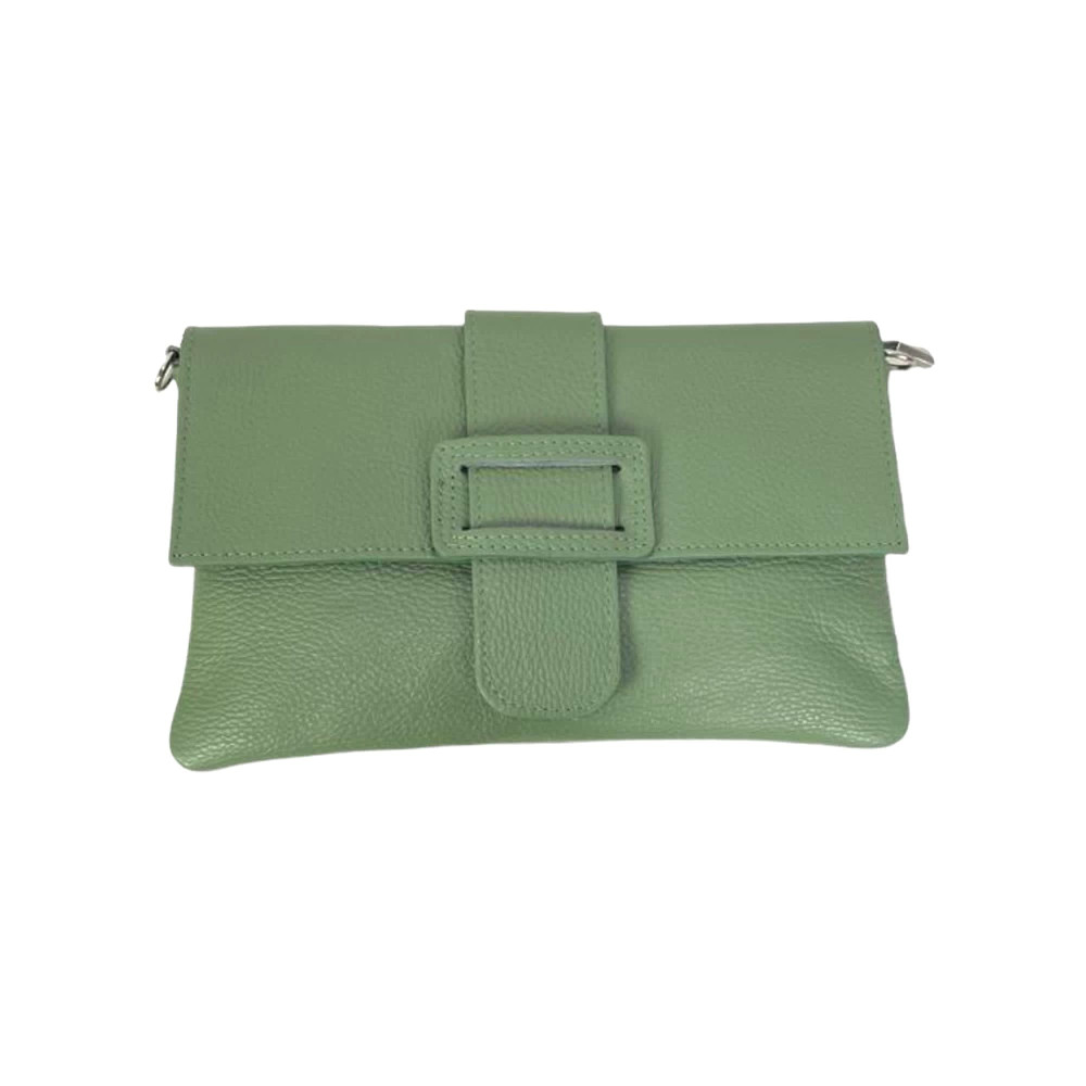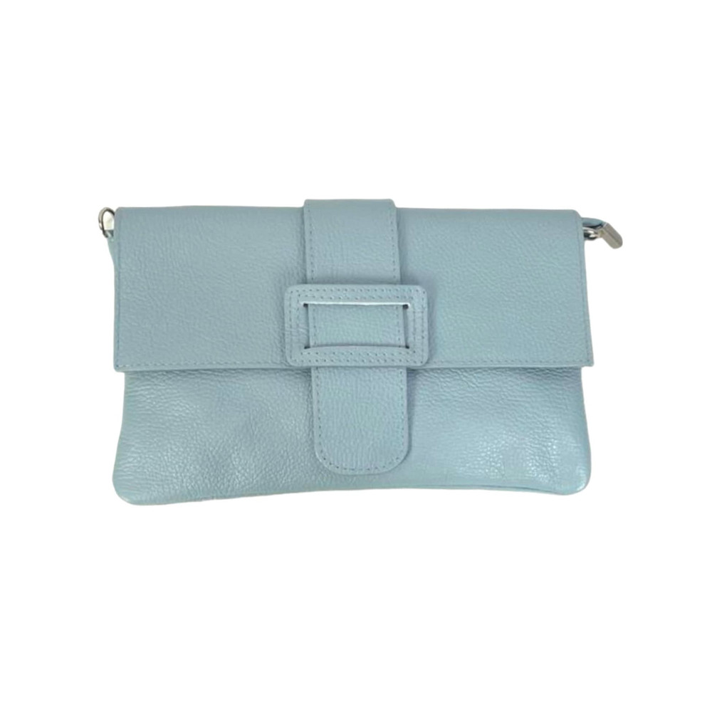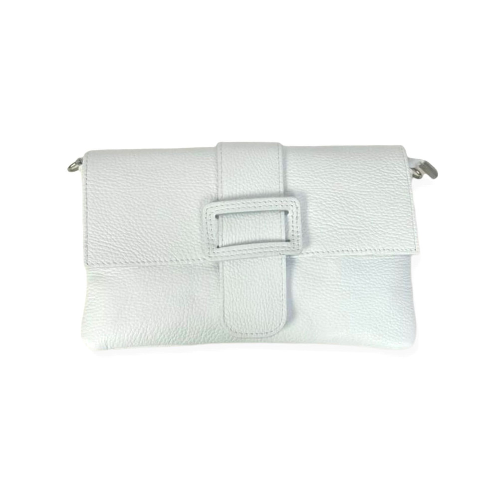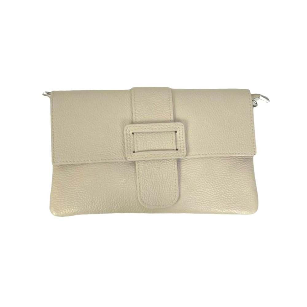 Bolso Bandolera en Piel Italiana para Mujer con Hebilla Decorativa, Solapa y Cremallera