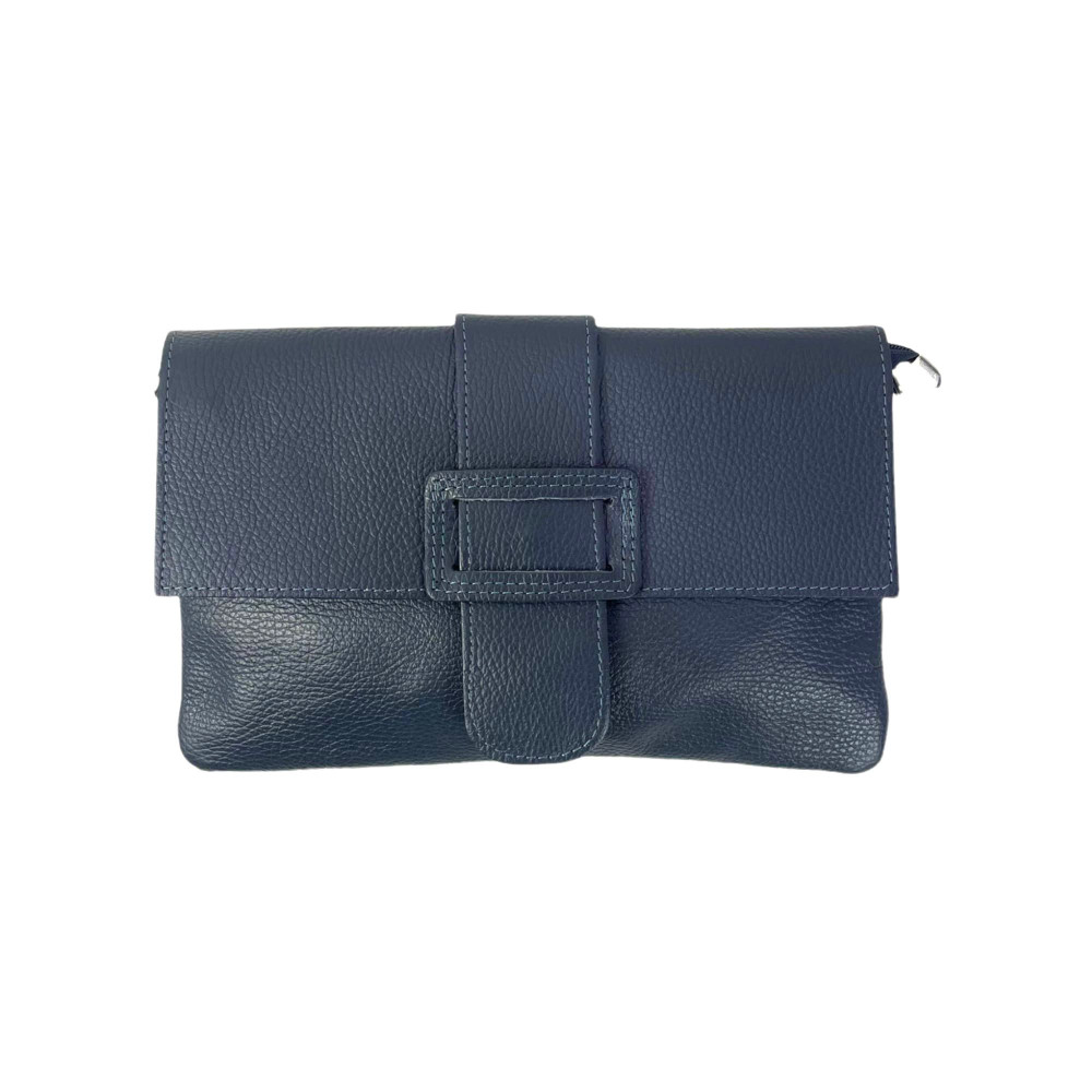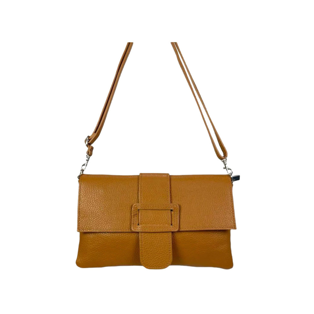 Bolso Bandolera de cuero vacuno decorado con una hebilla de piel en la solapa. Fabricado en Italia.