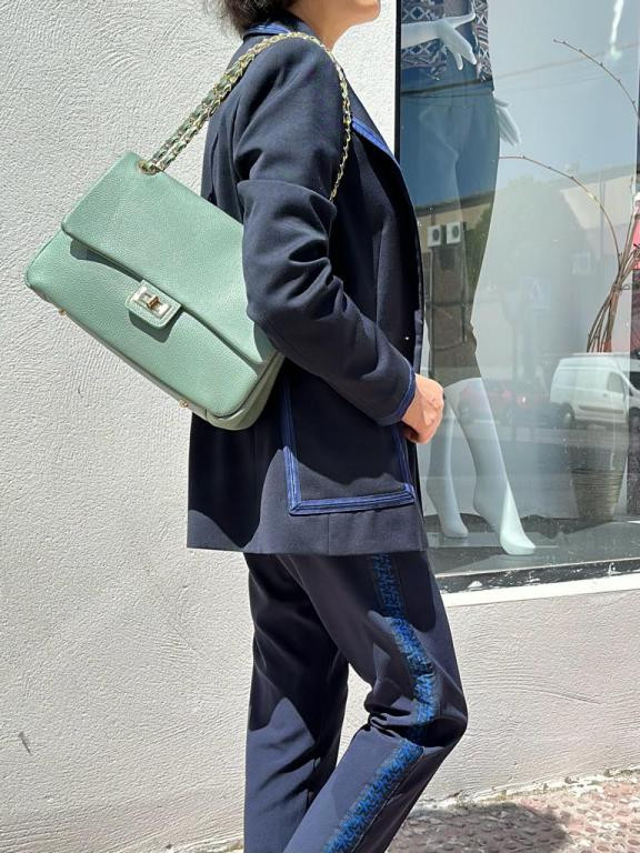 Bolso Bandolera de Piel Italiana para Mujer con Solapa Giro y Gran Capacidad