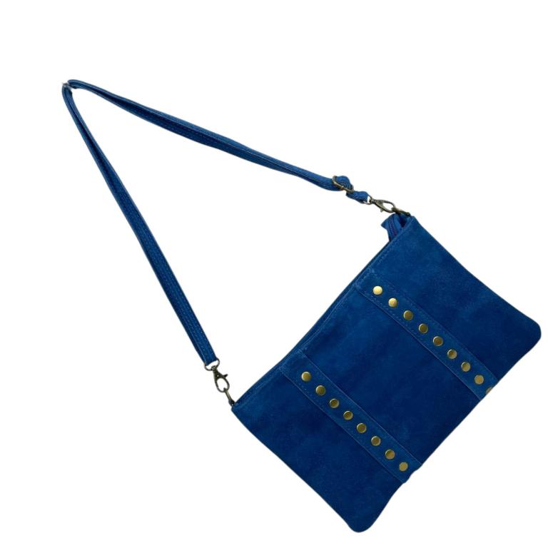 Bolso Bandolera en Piel de Serraje Italiana para Mujer con Tachuelas Decorativas Frontales y Cierre de Cremallera