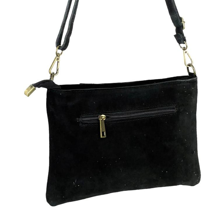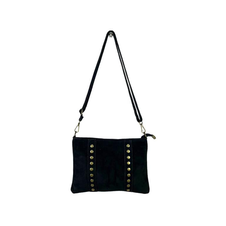 Bolso Bandolera Piel de Serraje para Mujer con Tachuelas Decorativas, Cierre de Cremallera y Bolsillo Trasero. Fabricado en Italia.