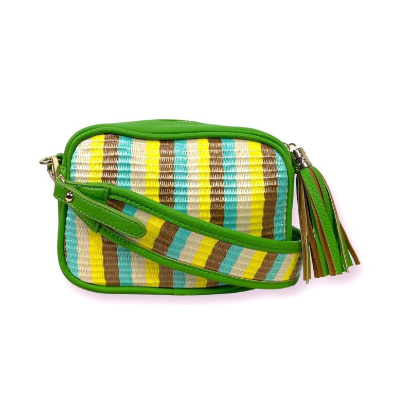 Bolso Bandolera Sintética Multicolor de Mujer con Pompón Decorativo, Cierre de Cremallera y Compartimentos Interiores.