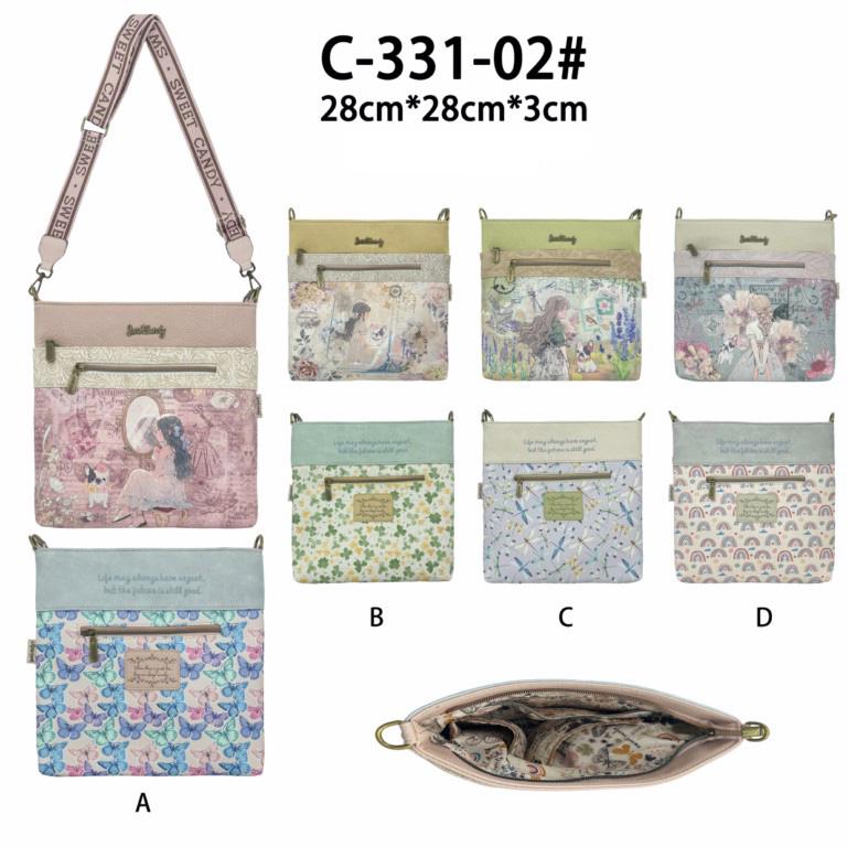 Bolso Bandolera Sintético de Mujer con Diseño Muñeca Sweet Candy, Bolsillo Frontal y Trasero, Ambos con Cierre de Cremallera. A juego con el resto de la colección Sweet Candy.
