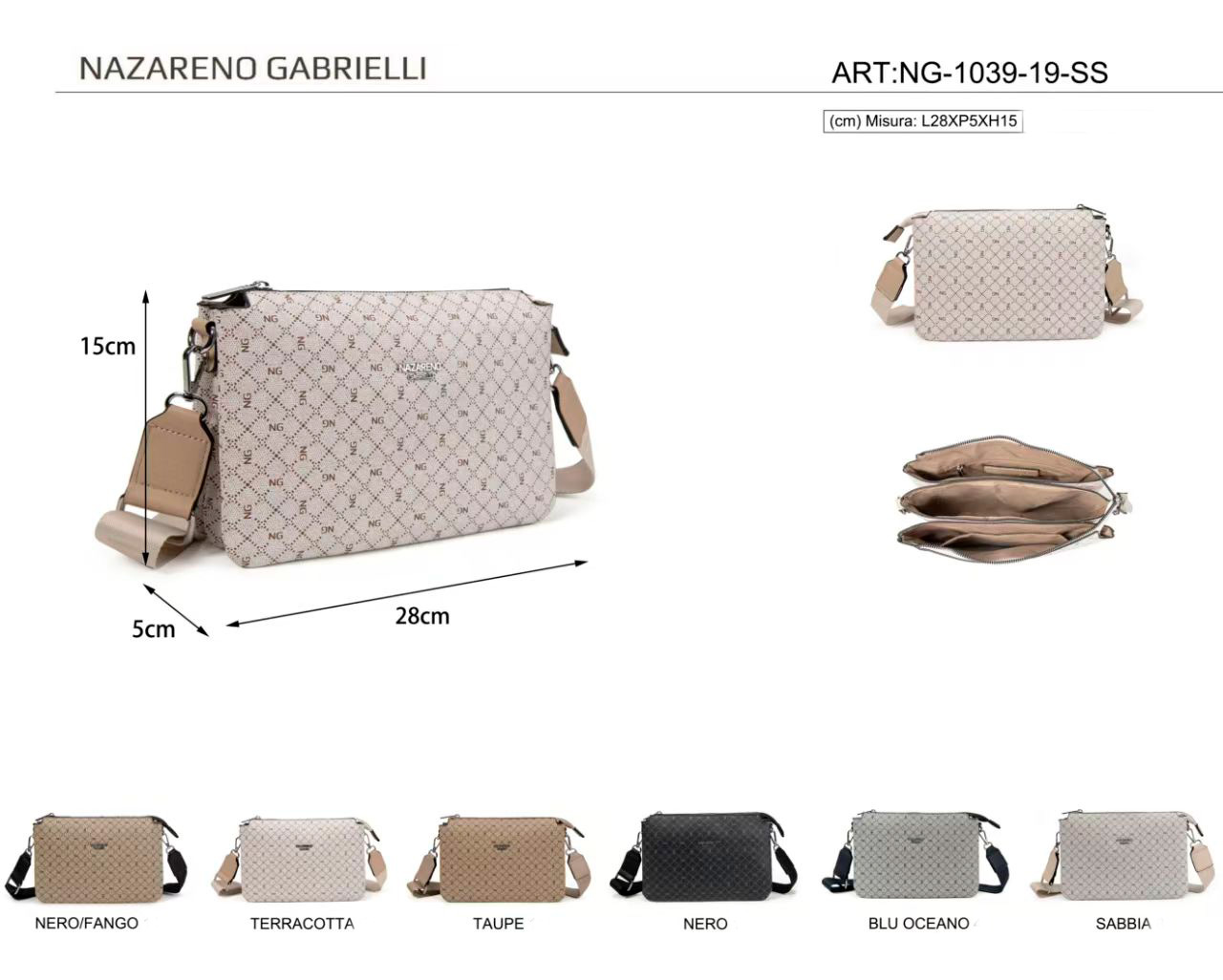 Bolso Bandolera Sintético de Mujer con Cierre de Cremallera y 3 Compartimentos Internos. Colección Nazareno Gabrielli.