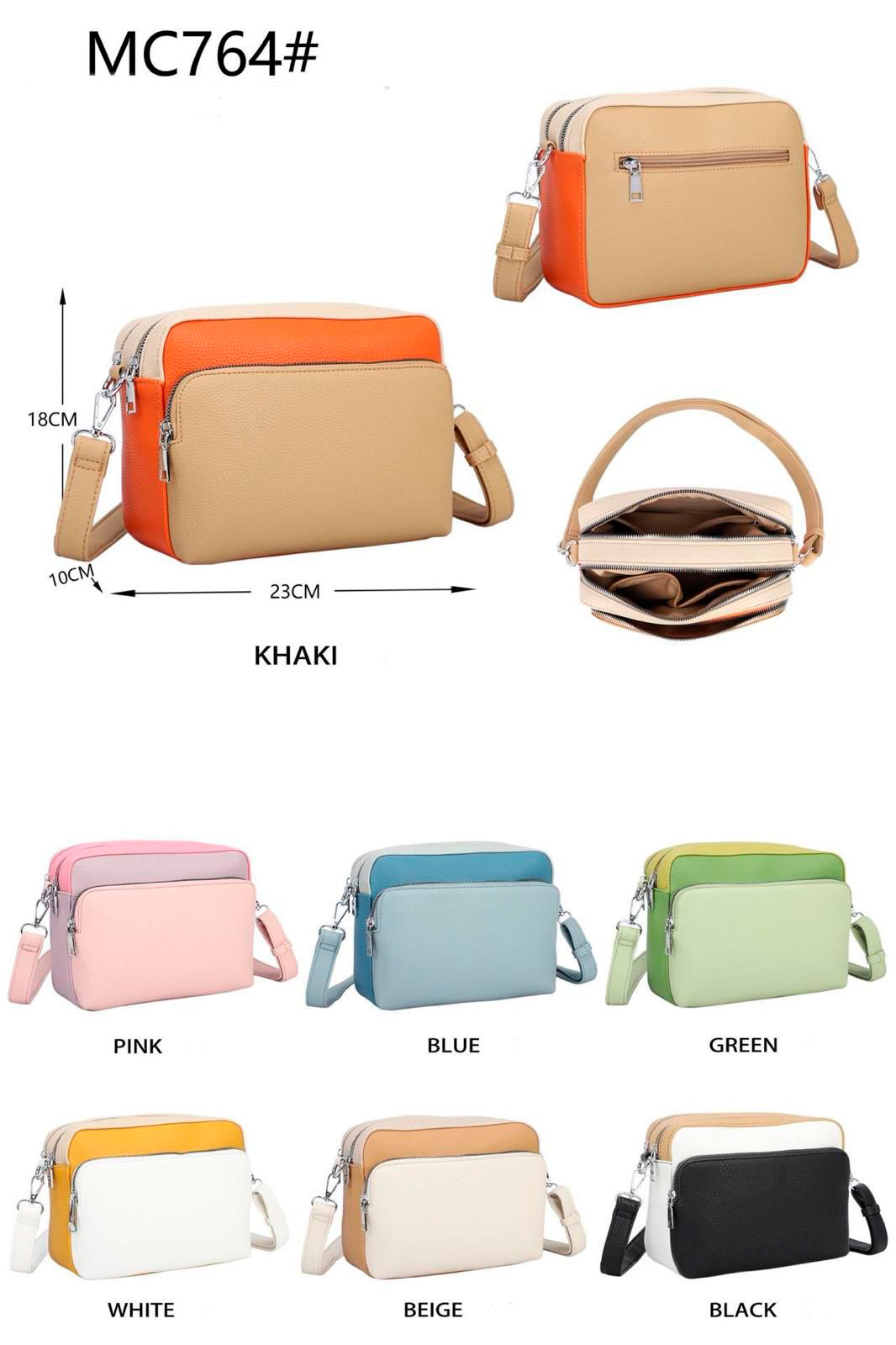 Bolso Bandolera Sintético Tricolor con 4 Bolsillos con Cierre de Cremallera para Mujer.