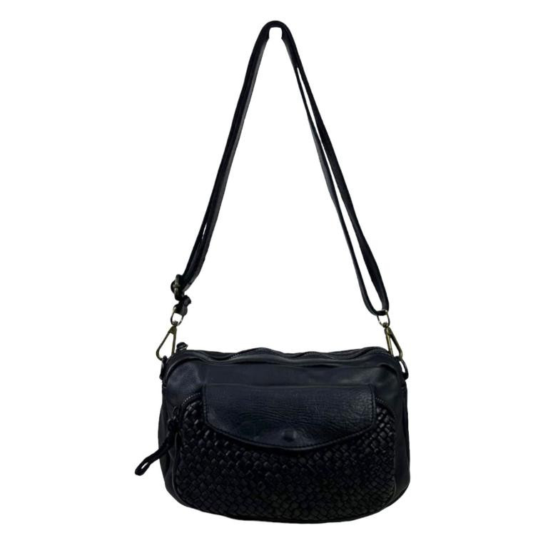 Bolso Bandolera Vintage Piel Lavado para Mujer con Gran Calidad, Bolsillos Exteriores y Cierre de Cremallera. Fabricado en Italia.