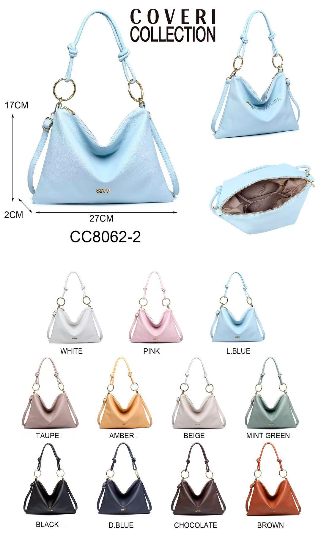 Bolso Compacto y Sintético tipo Hobo con Bolsillo Trasero con Cierre de Cremallera para Mujer. Colección Coveri Collection.