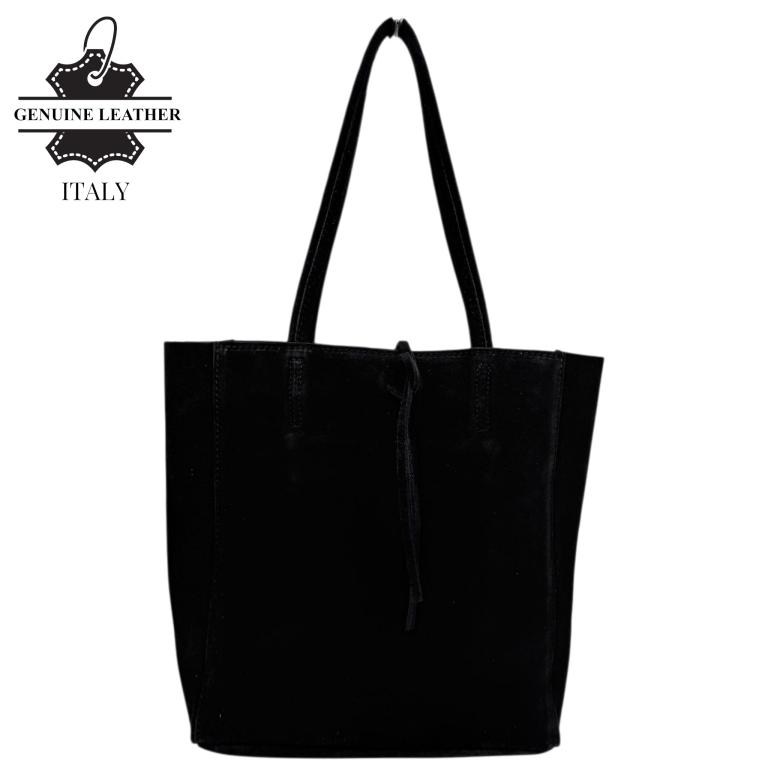 Bolso de Hombro tipo Tote en Serraje con Cuerdas, Cierre de Cremallera y Bolsillo Interno para Mujer. Fabricado en Italia.