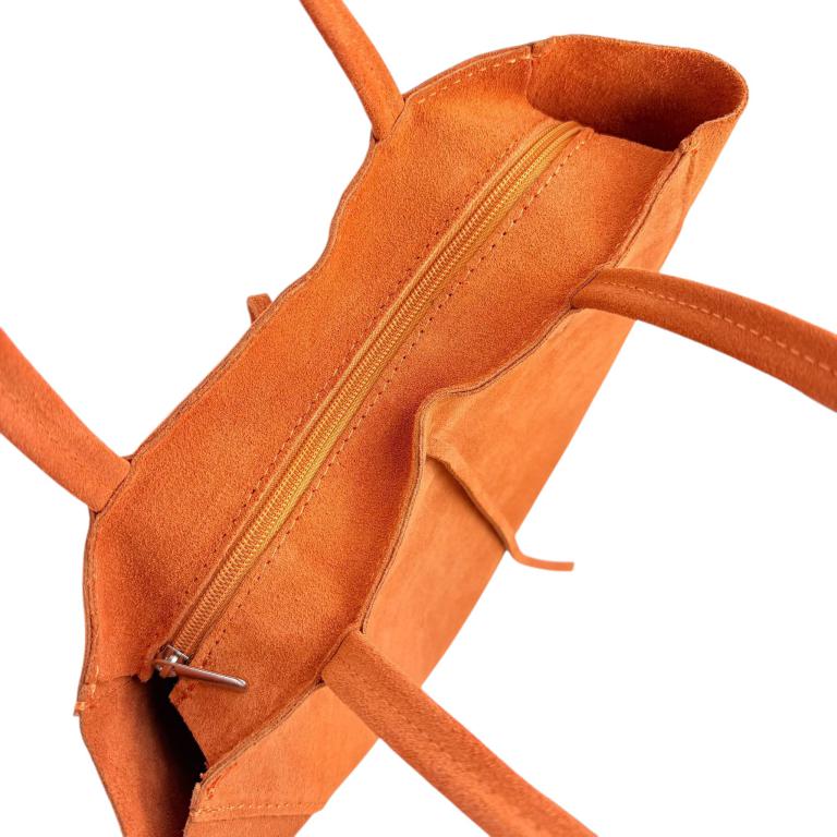 Bolso de Hombro tipo Tote en Serraje con Cuerdas, Cierre de Cremallera y Bolsillo Interno para Mujer.