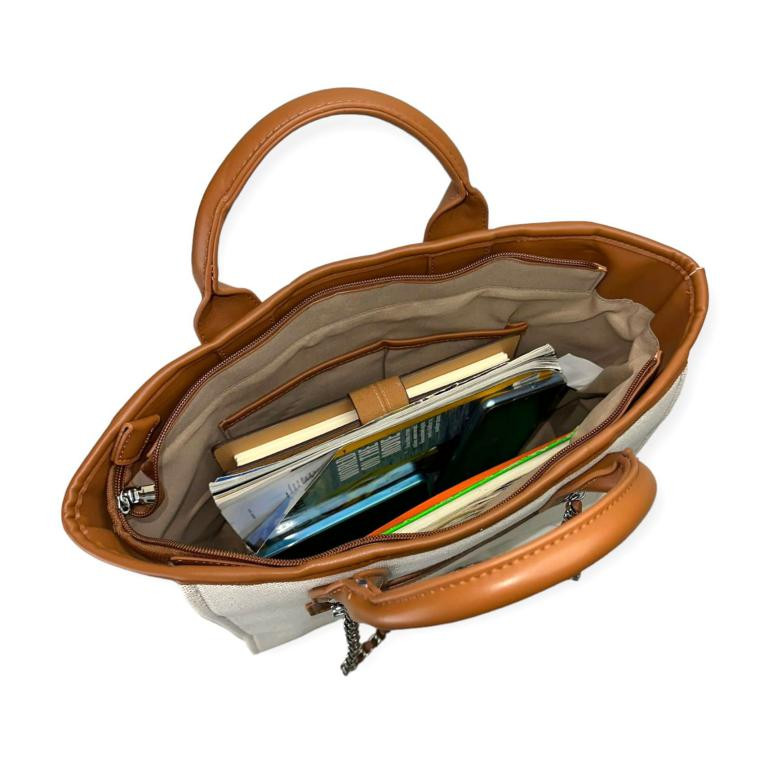 Bolso de Mano Canvas tipo Tote para Mujer con Gran Capacidad, 2 Asas Cortas y 2 Largas estilo Cadena/Polipiel.