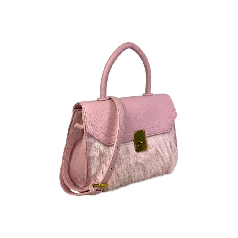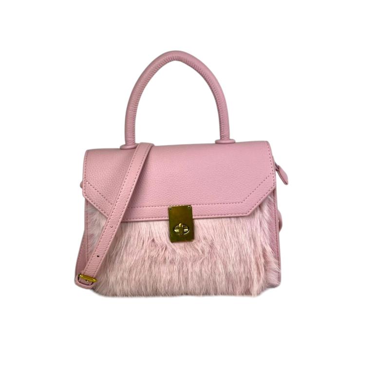 Bolso de Mano con Pelo Sintético, Bolsillo Trasero con Cierre de Cremallera y Bonito Diseño para Mujer.