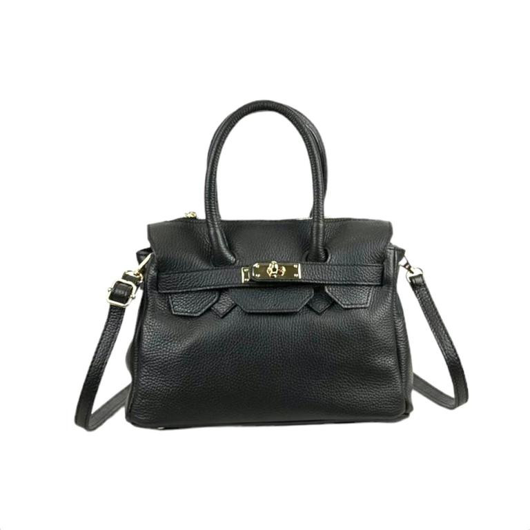 Bolso de Mano en Piel Italiana con Frontal Decorativo, 2 Asas Cortas y Tira Bandolera Ajustable y Extraíble para Mujer.