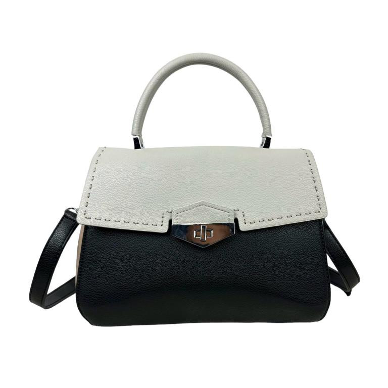 Bolso de Mano Sintético Bicolor de Mujer con Solapa de Giro y Cremallera