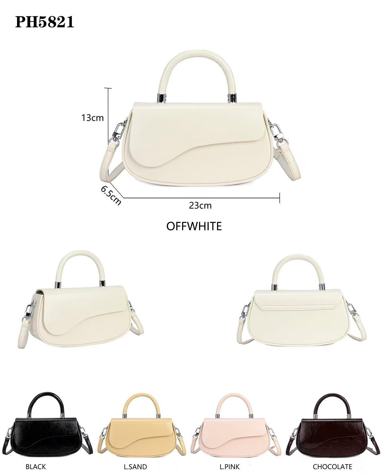 Bolso de Mano Sintético Rígido con Solapa Curva Original y Tira Bandolera Ajustable y Extraíble para Mujer.