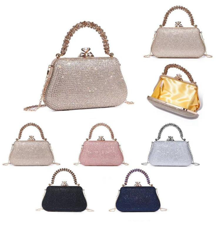 Bolso de Fiesta Sintético para Mujer con Efecto Brillante, Lentejuelas Decorativas y Cierre de Click con Diamante.