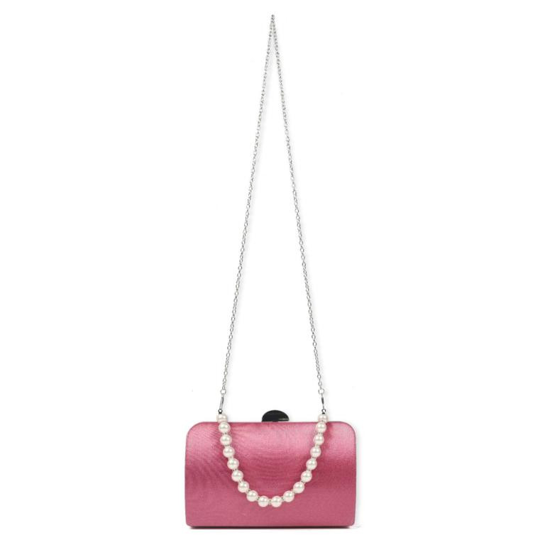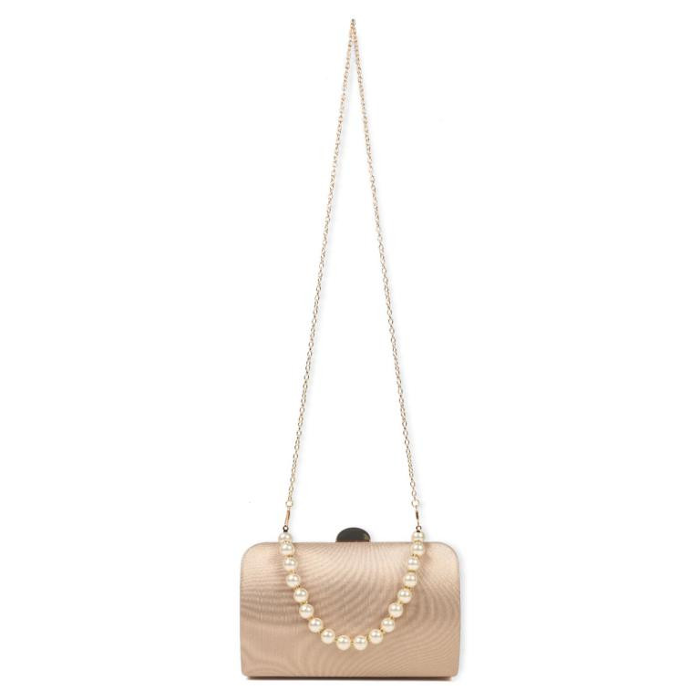 Bolso de Fiesta Sintético de Mujer con Asa de Mano tipo Perlas y Cierre de Click.