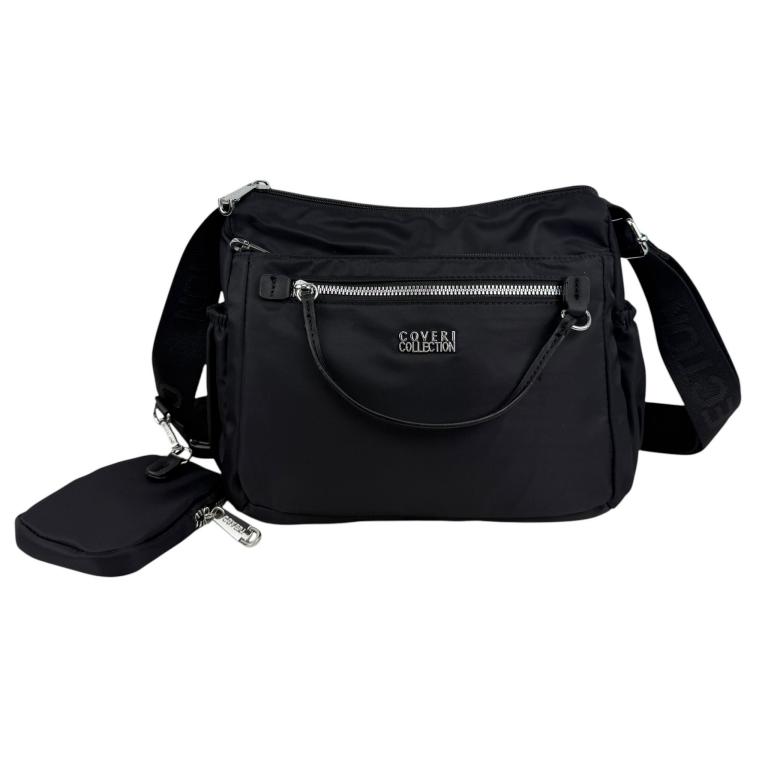 Bolso de Hombro en Nylon con Multicompartimentos + Monedero Extra para Mujer. Colección Coveri Collection.