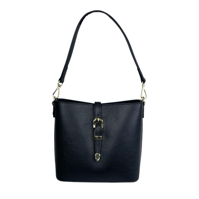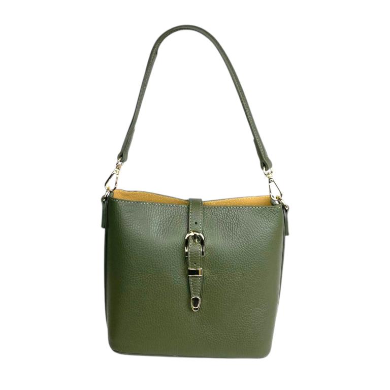 Bolso de Hombro en Piel Italiana con Asa Larga Removible, Tira Bandolera Ajustable y Extraíble y Mini Solapa Magnética de Mujer. Fabricado en Italia.