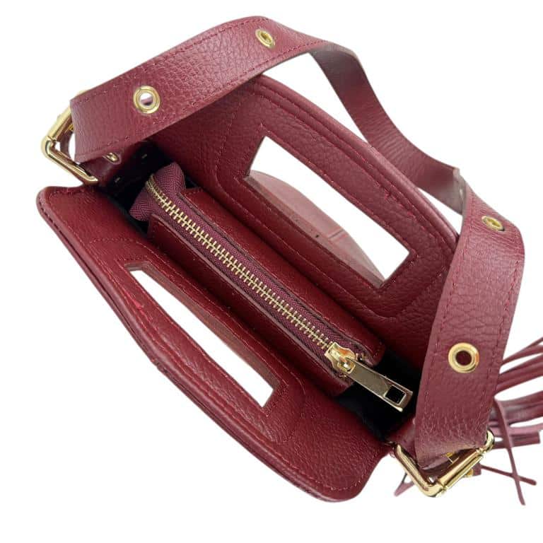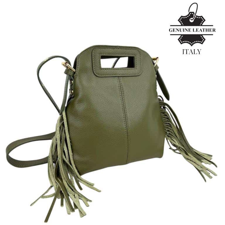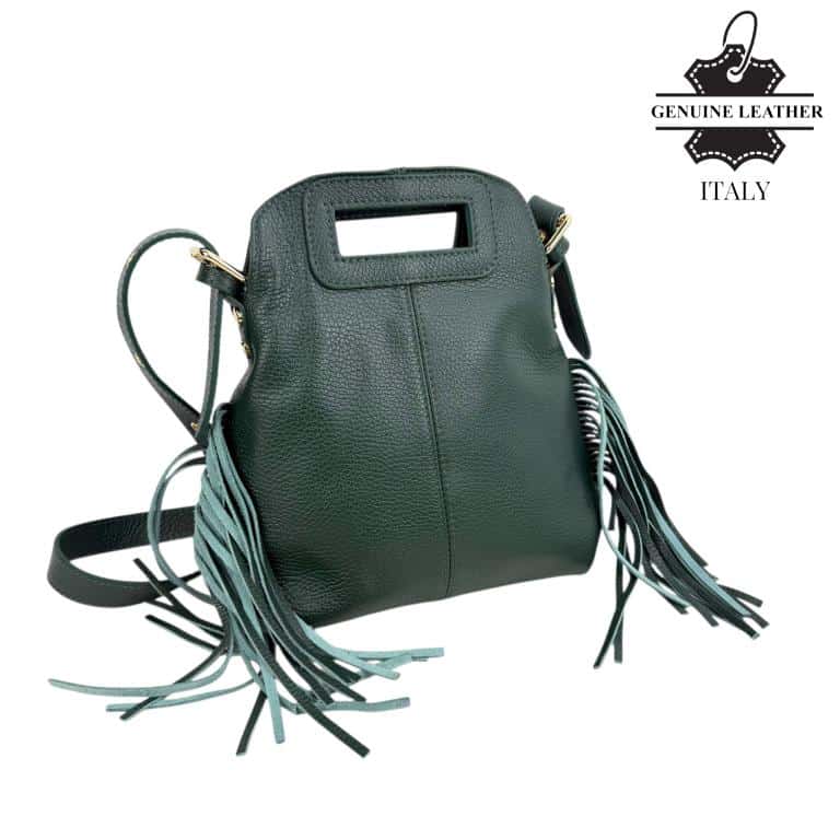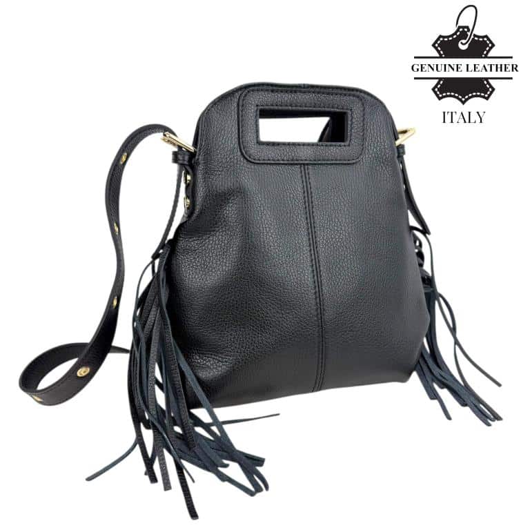 Bolso de Hombro en Piel Estilo Miss M con Flecos Laterales Decorativos y Gran Calidad para Mujer. Fabricado en Italia.