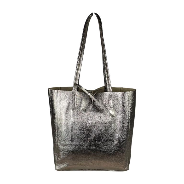 Bolso de Hombro en Piel tipo Tote con 2 Asas Largas y Bolsillo Interior Cosido con Cierre de Cremallera para Mujer. Fabricado en Italia.