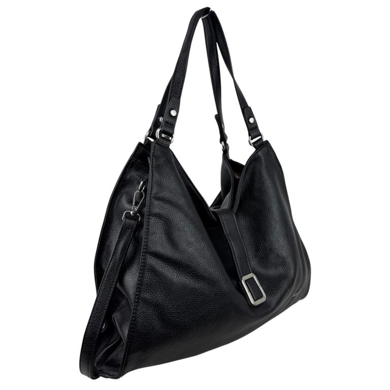 Bolso de Hombro Sintético tipo Hobo con Gran Capacidad, Mini Solapa y Bolsillo Trasero con Cierre de Cremallera para Mujer. Colección Gino Valentini.