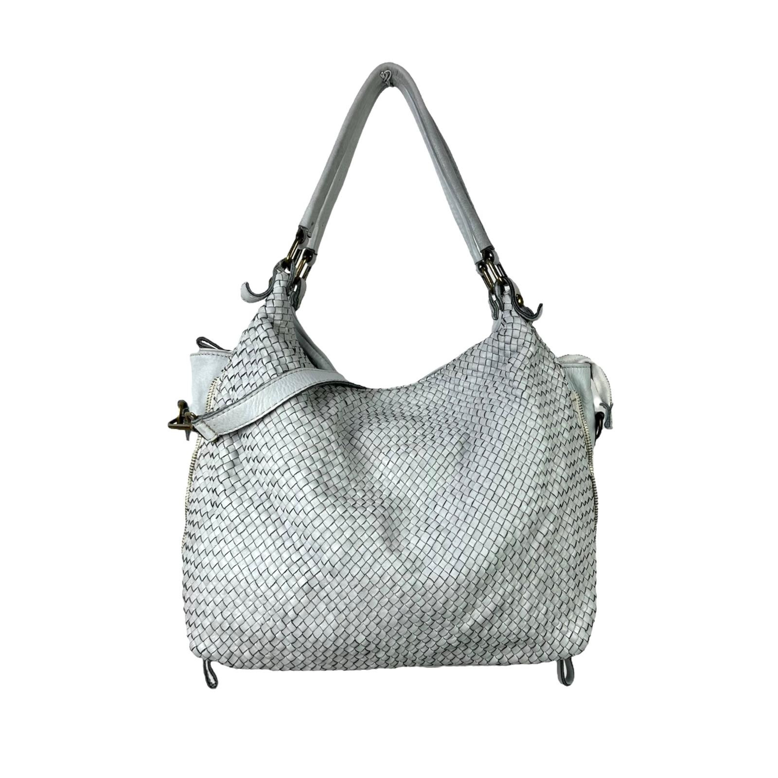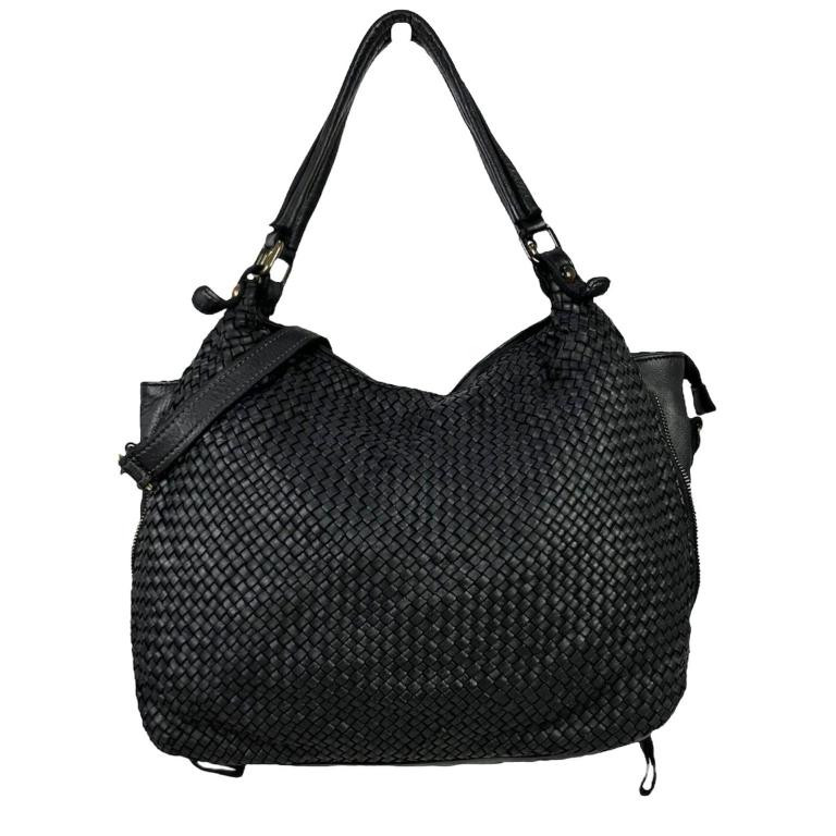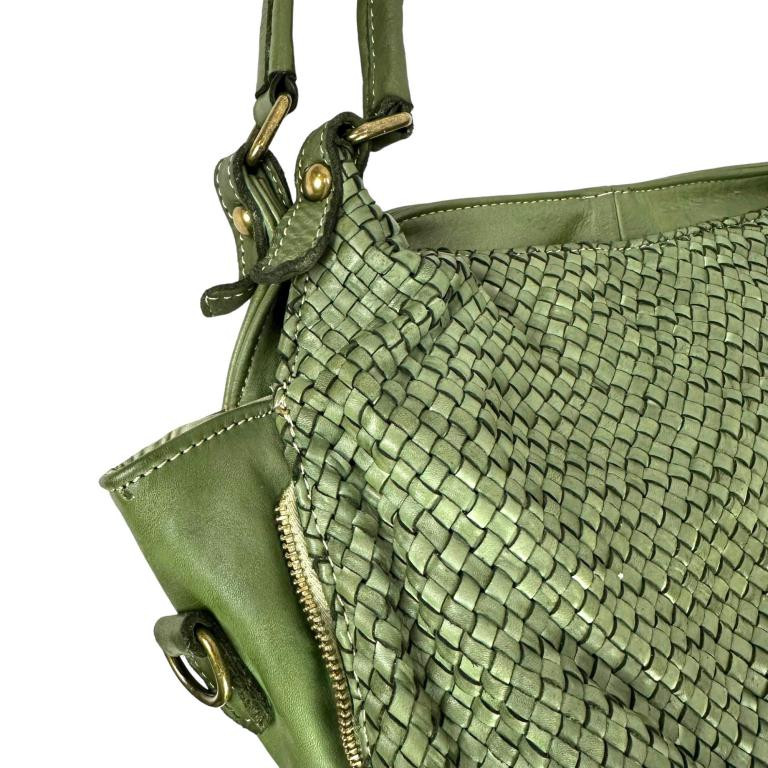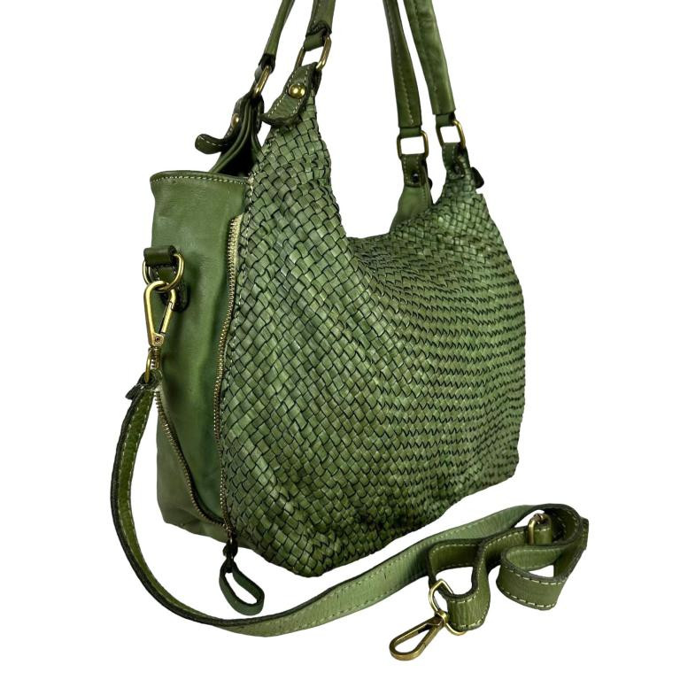 Bolso de Hombro Vintage Piel Lavado para Mujer con Gran Capacidad, Cremalleras Laterales y Cierre de Cremallera. Fabricado en Italia.