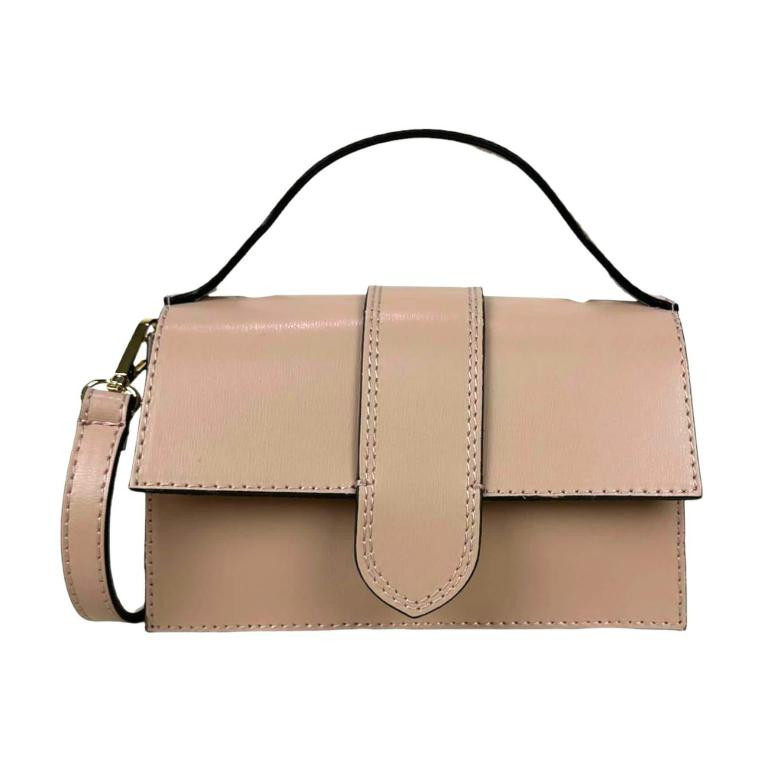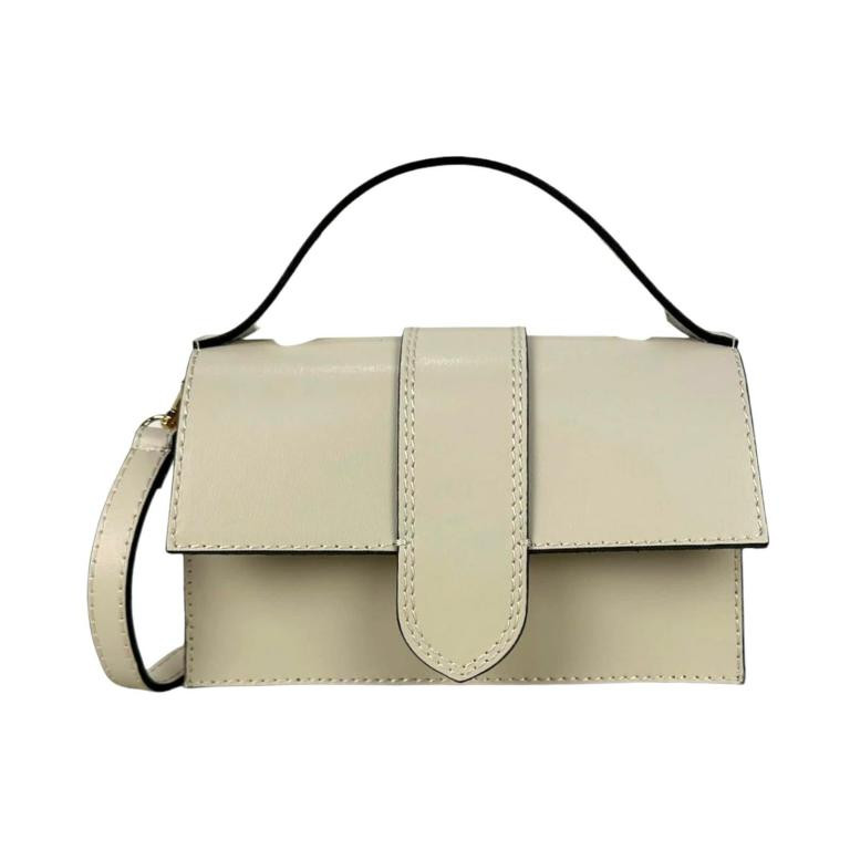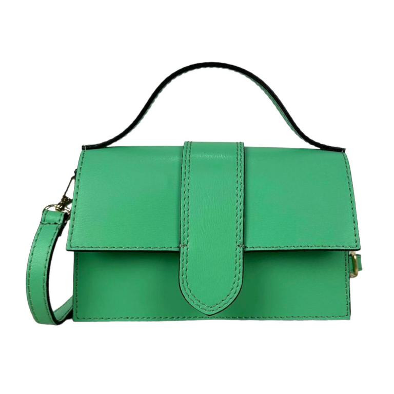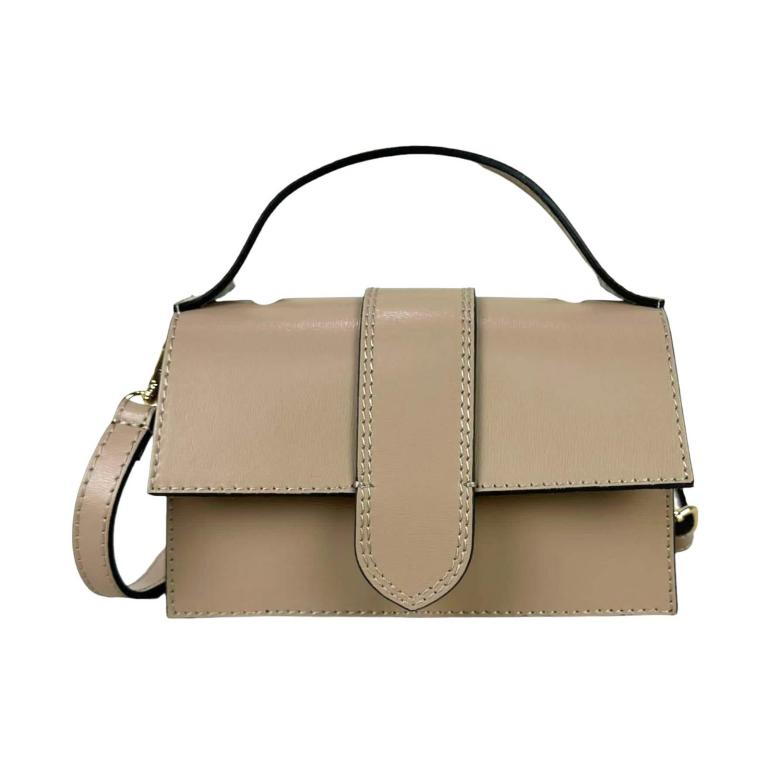 Bolso de Mano Compacto para Mujer de Piel Italiana con Compartimento Trasero.