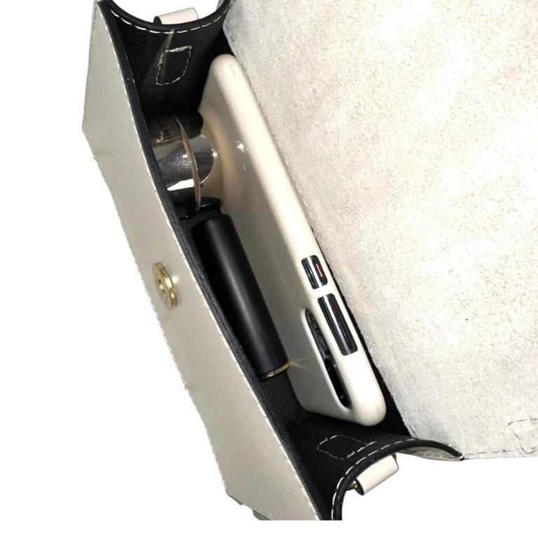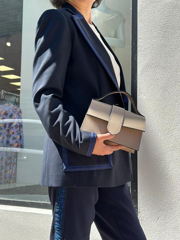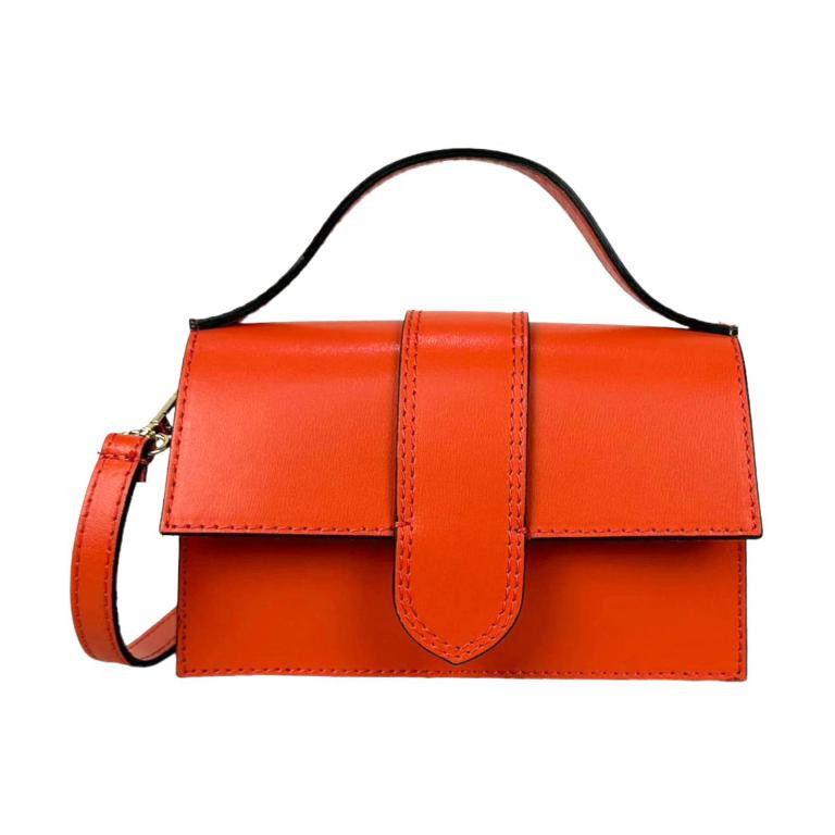 Bolso de Mano Compacto para Mujer de Piel Italiana con Compartimento Trasero y Solapa de Botón. Fabricado en Italia.