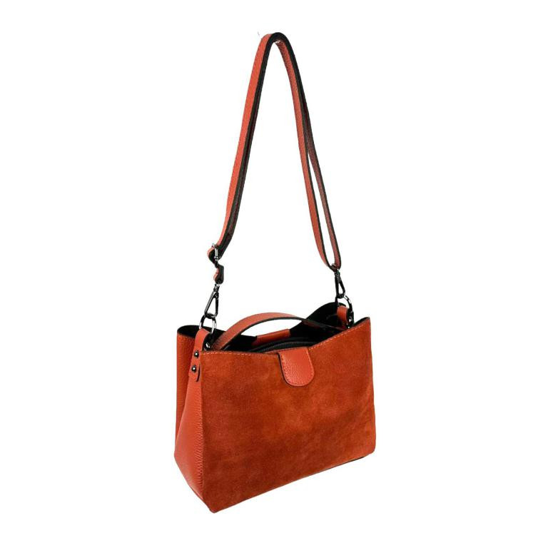 Bolso de Mano para Mujer con Piel de Grano y Parte Frontal en Serraje. Fabricado en Italia.