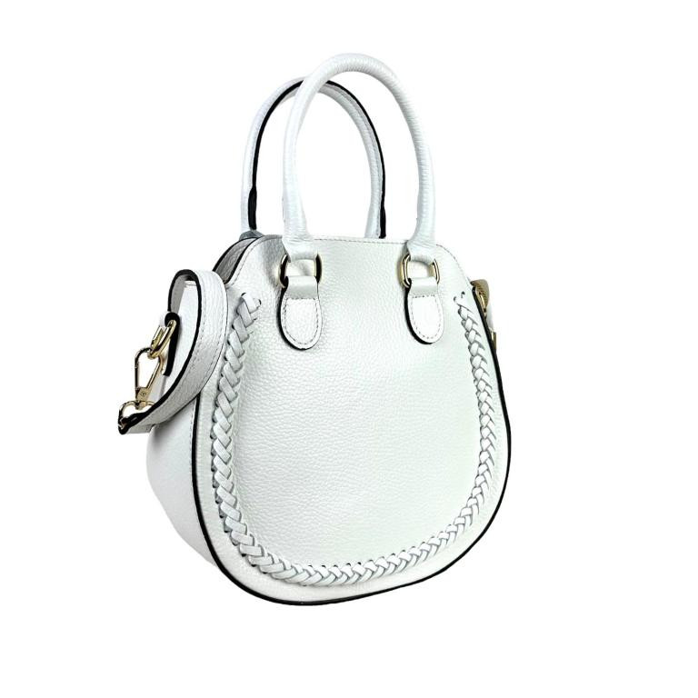 Bolso de Mano de Piel con 2 Asas Cortas, Cierre de Cremallera y Bolsillo Trasero para Mujer. Fabricado en Italia.