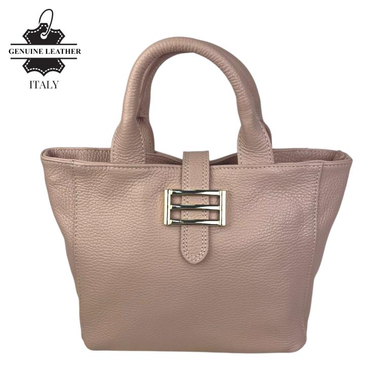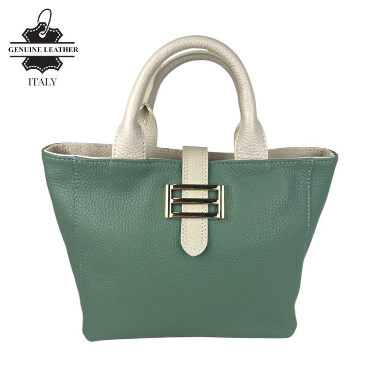 Bolso de Mano en Piel con 2 Formas, Solapa de Botón Trasero, Cremallera y Enganche para Mujer. Fabricado en Italia.