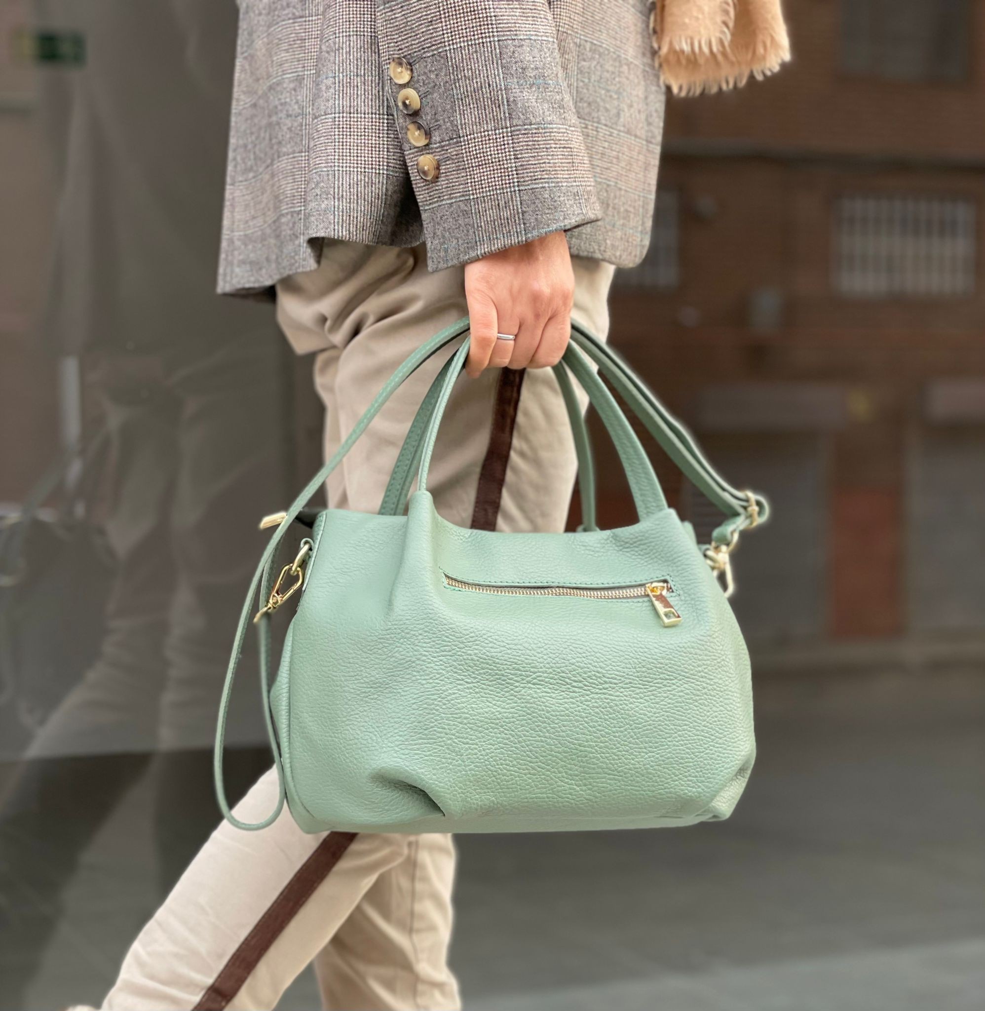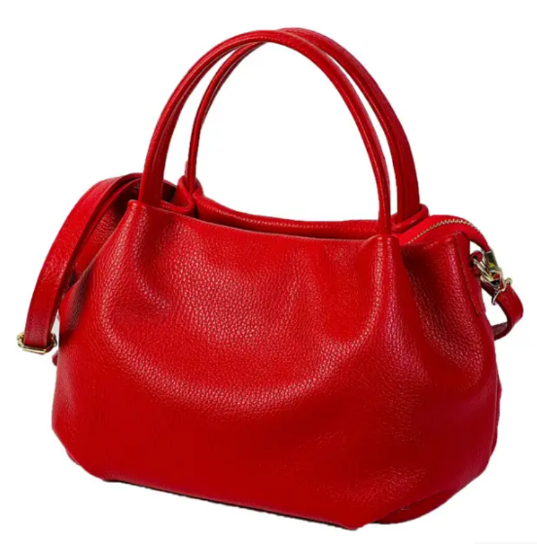 Bolso de Mano Piel Italiana para Mujer con 2 Asas Cortas, Tira Bandolera, Bolsillo Trasero y cierre de cremallera. Fabricado en Italia.