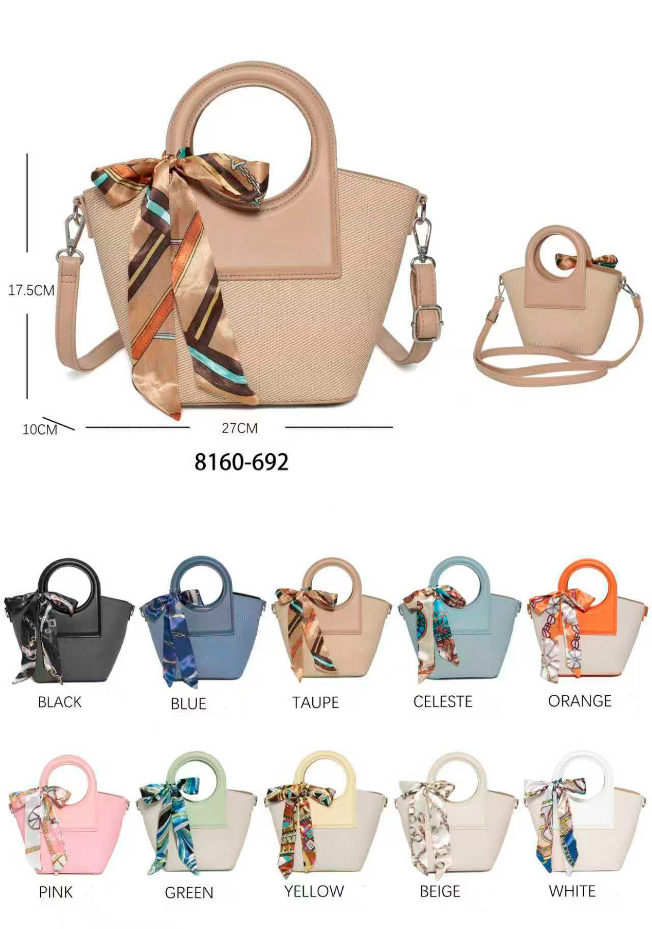 Sé el primero en valorar “Bolso de Mano Sintético con Asas Cortas Circulares, Pañuelo Decorativo y 3 Compartimentos Mujer”