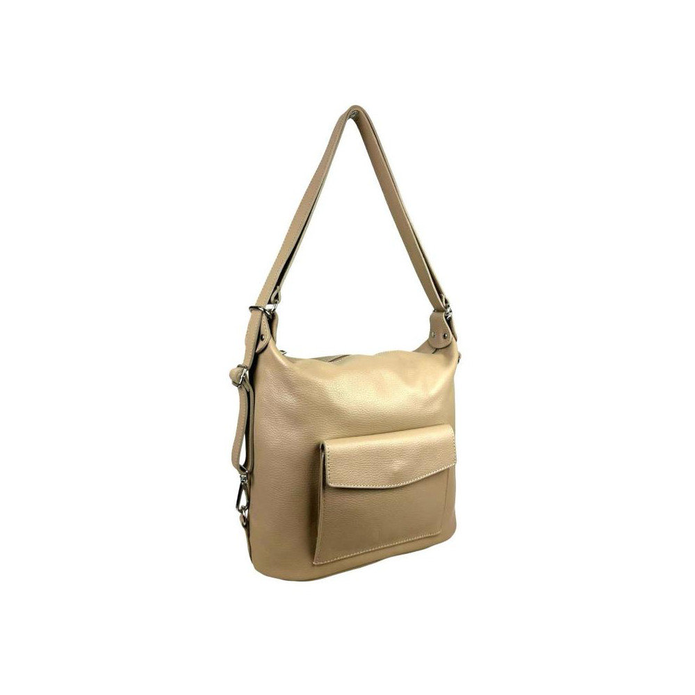 Bolso-Mochila de Piel Italiana para Mujer con Gran Capacidad y Bolsillo Frontal