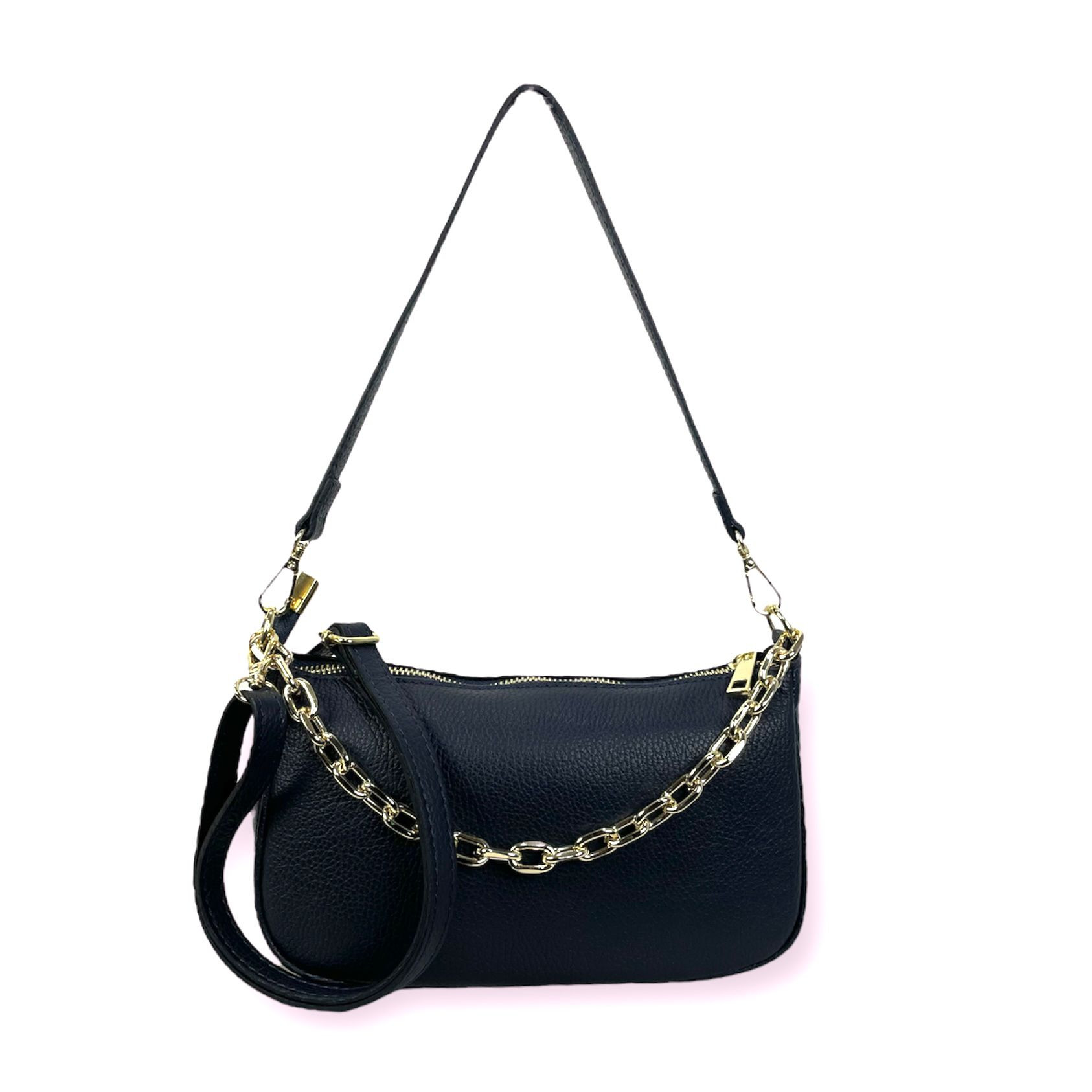 Bolso de Piel para Mujer con Asa de Cadena, tira bandolera, cierre de cremallera y Bolsillo Interno. Fabricado en Italia.