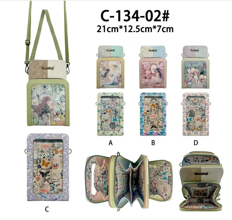 Bolso Portamóvil Sintético con Diseño de Muñeca Sweet Candy y Bolsillo Trasero Transparente para Mujer.