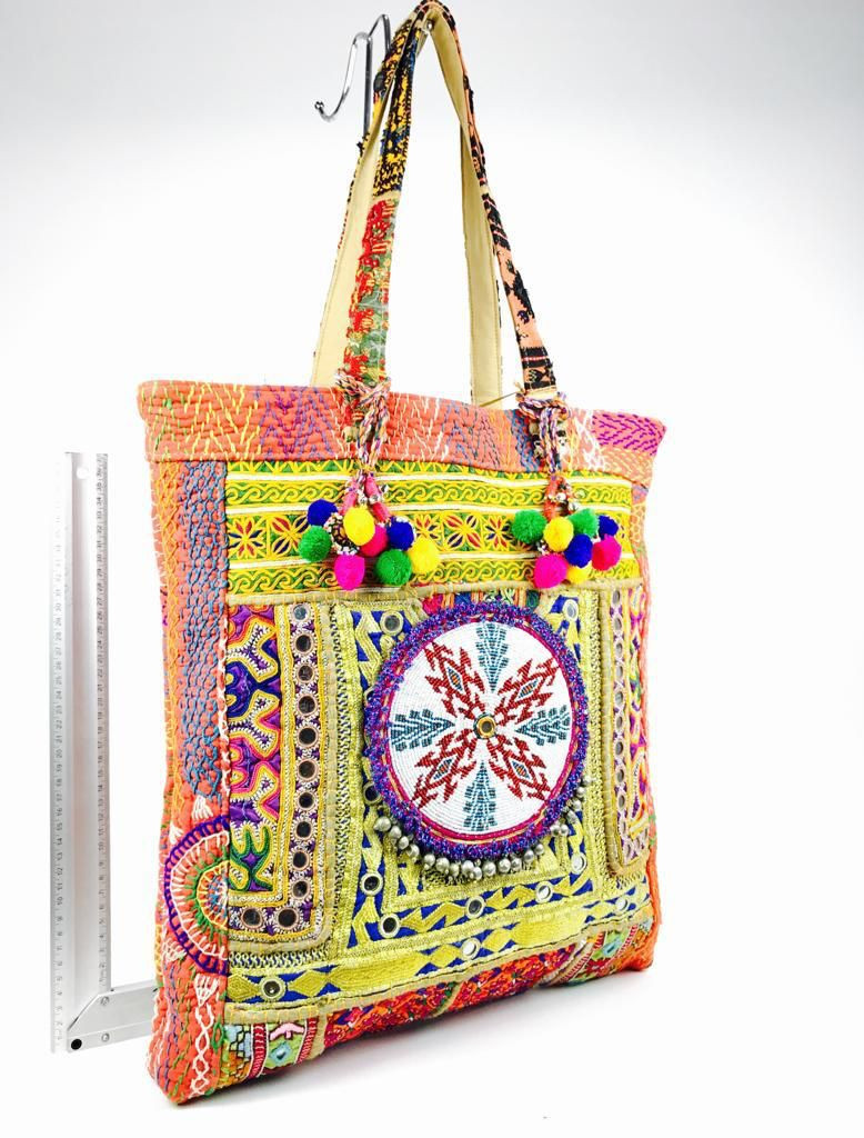 Bolso Shopper Banjara étnico indio con diseños únicos.