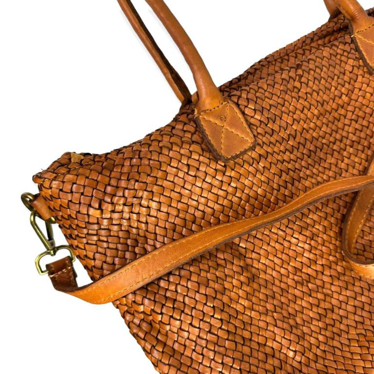 Bolso Shopper Mujer Estilo Vintage de Piel Lavado con Cierre de Cremallera, Asas Largas y Gran Capacidad. Fabricado en Italia.