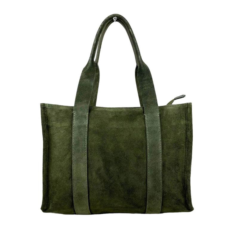 Bolso Shopper de Piel de Serraje para Mujer con Bolsitos Interiores, 2 Asas de Mano y Cierre de Cremallera. Fabricado en Italia.