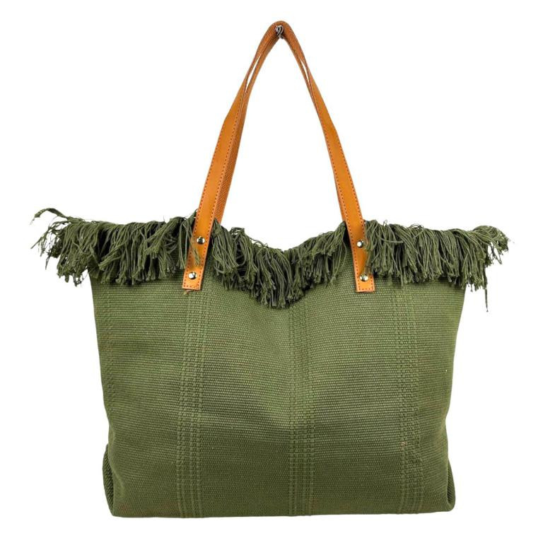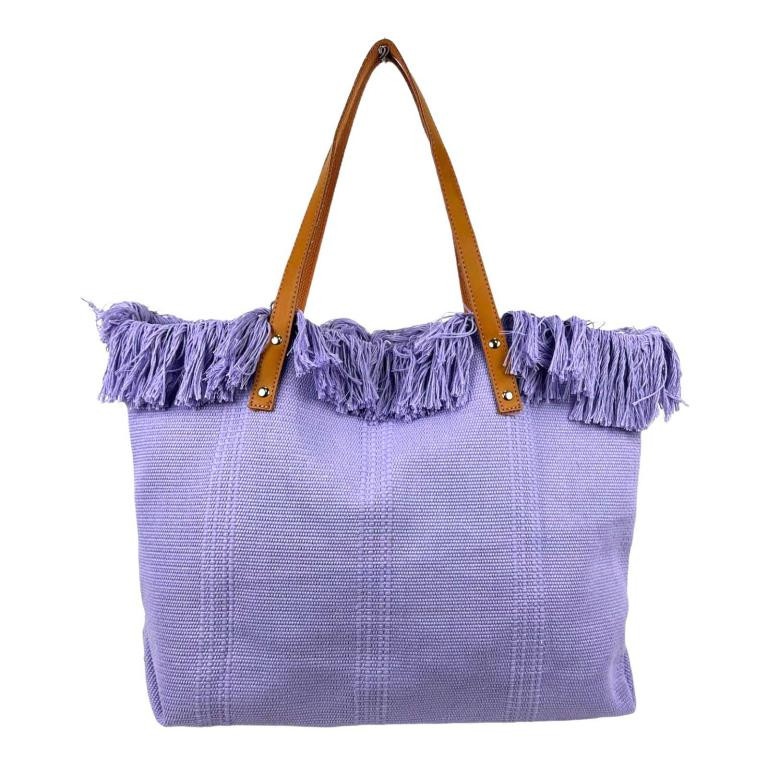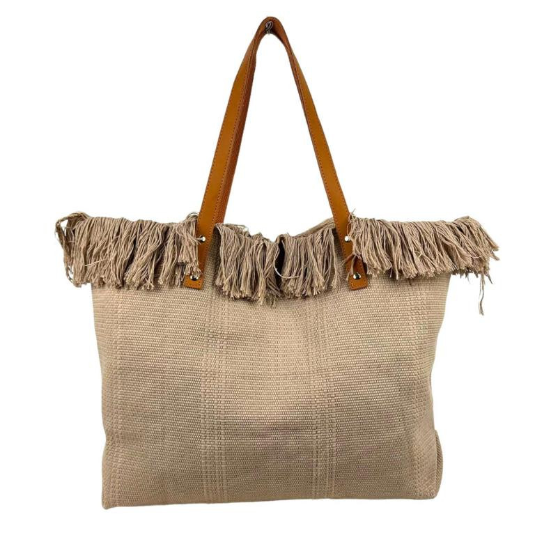 Bolso Shopper de tela algodón para Mujer con Asas Largas de Piel y Flecos