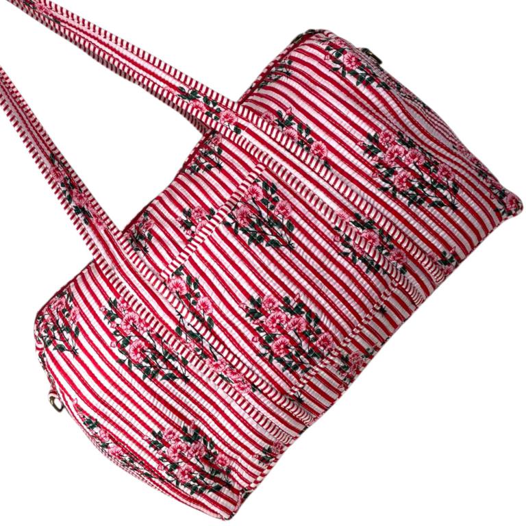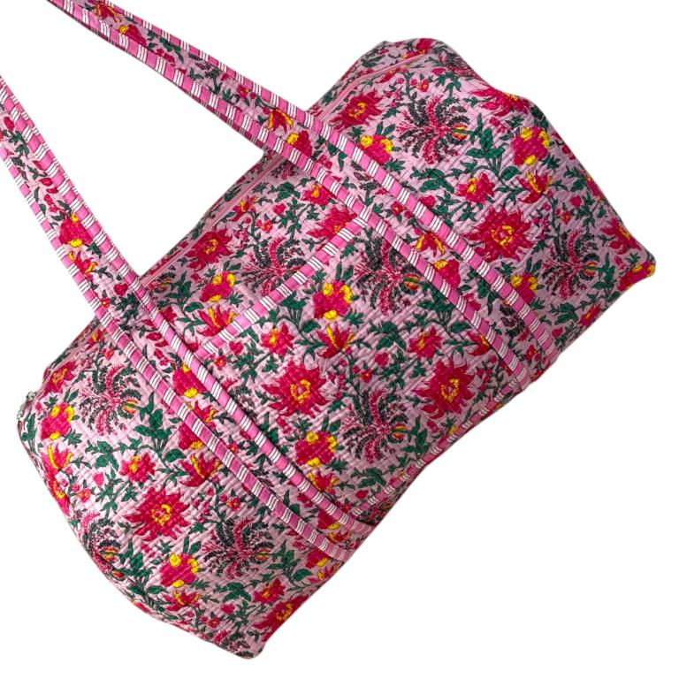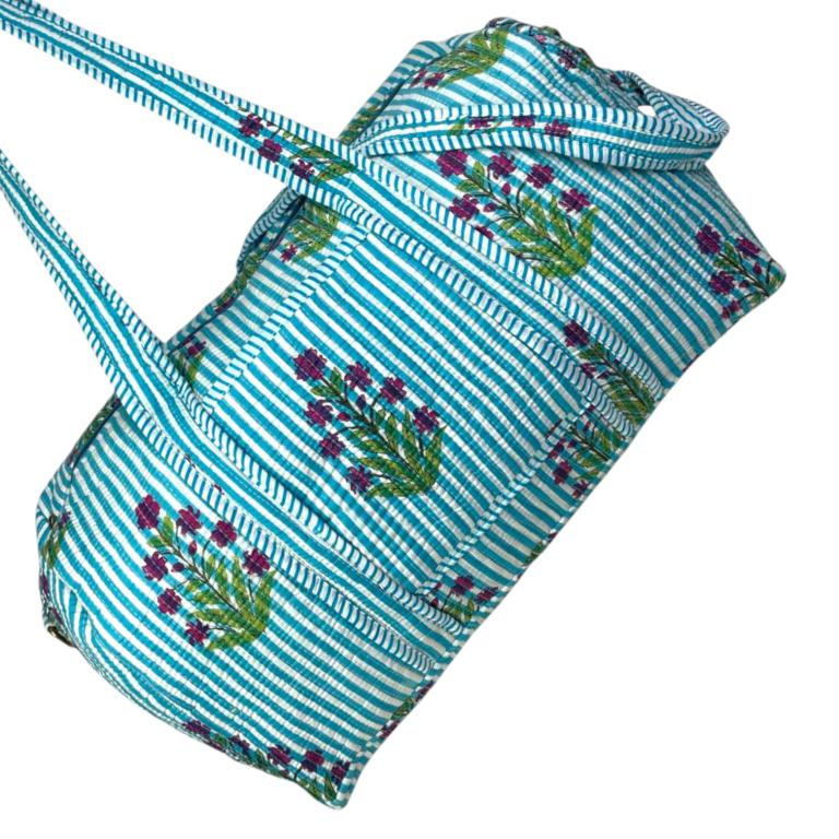 Bolso de Viaje Acolchado Algodón para Mujer con Asas Largas y Cremallera. Fabricado en India
