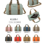 Viene con 2 asas cortas y un asa larga ajustable de tela.